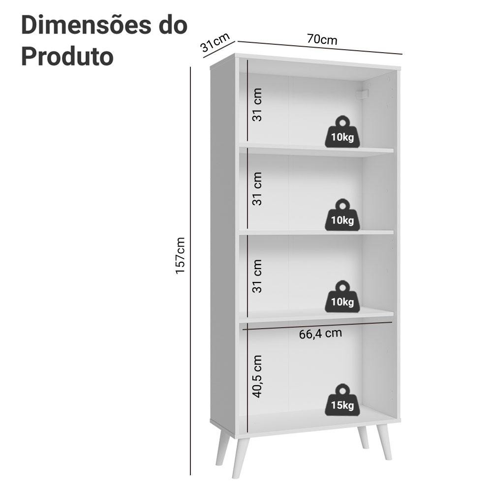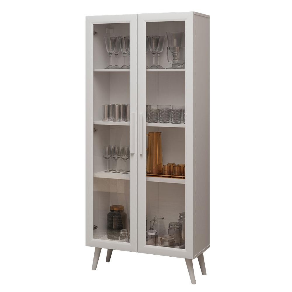 Cristaleira 70 cm 2 Portas de Vidro com Pés Cônicos Branco Madesa