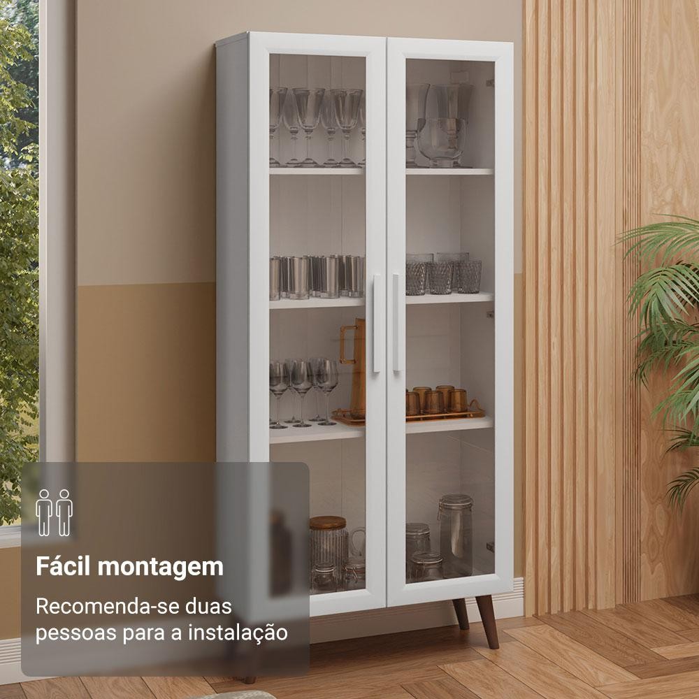 Cristaleira 70 cm 2 Portas de Vidro com Pés Cônicos Branco/Marrom Madesa