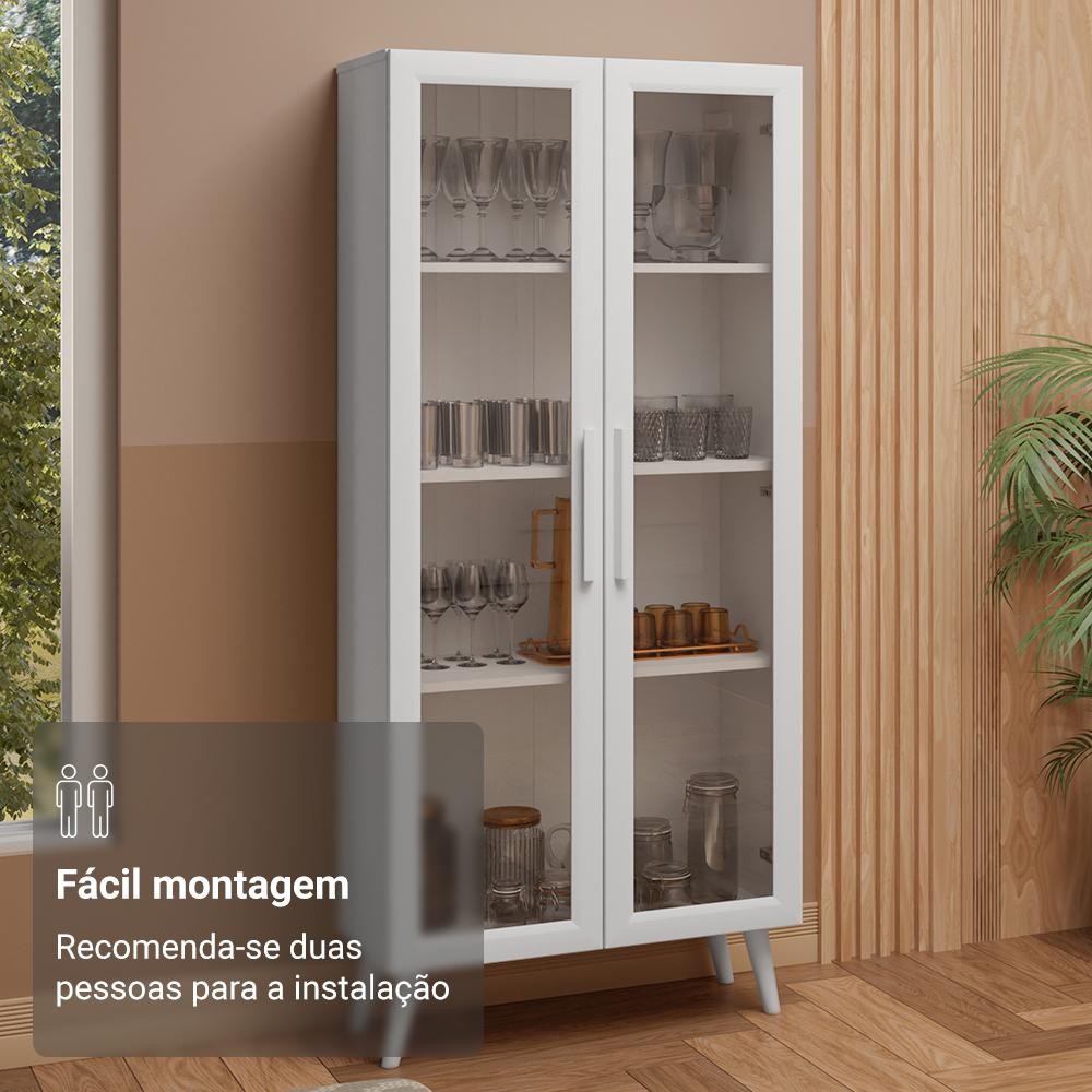 Cristaleira 70 cm 2 Portas de Vidro com Pés Cônicos Madesa Branco