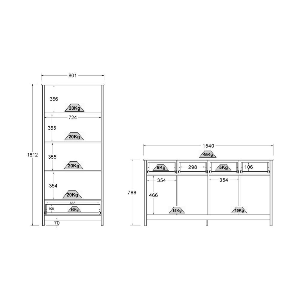 Cristaleira + Aparador Buffet Ditália E-954 + R-626 Preto