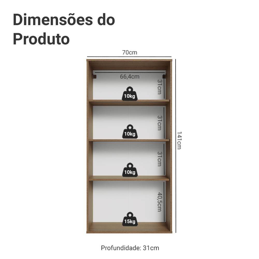 Cristaleira Suspensa 70 cm 2 Portas de Vidro Vik Madesa R