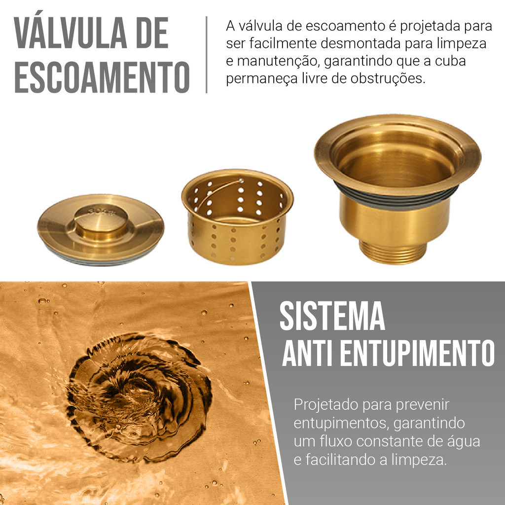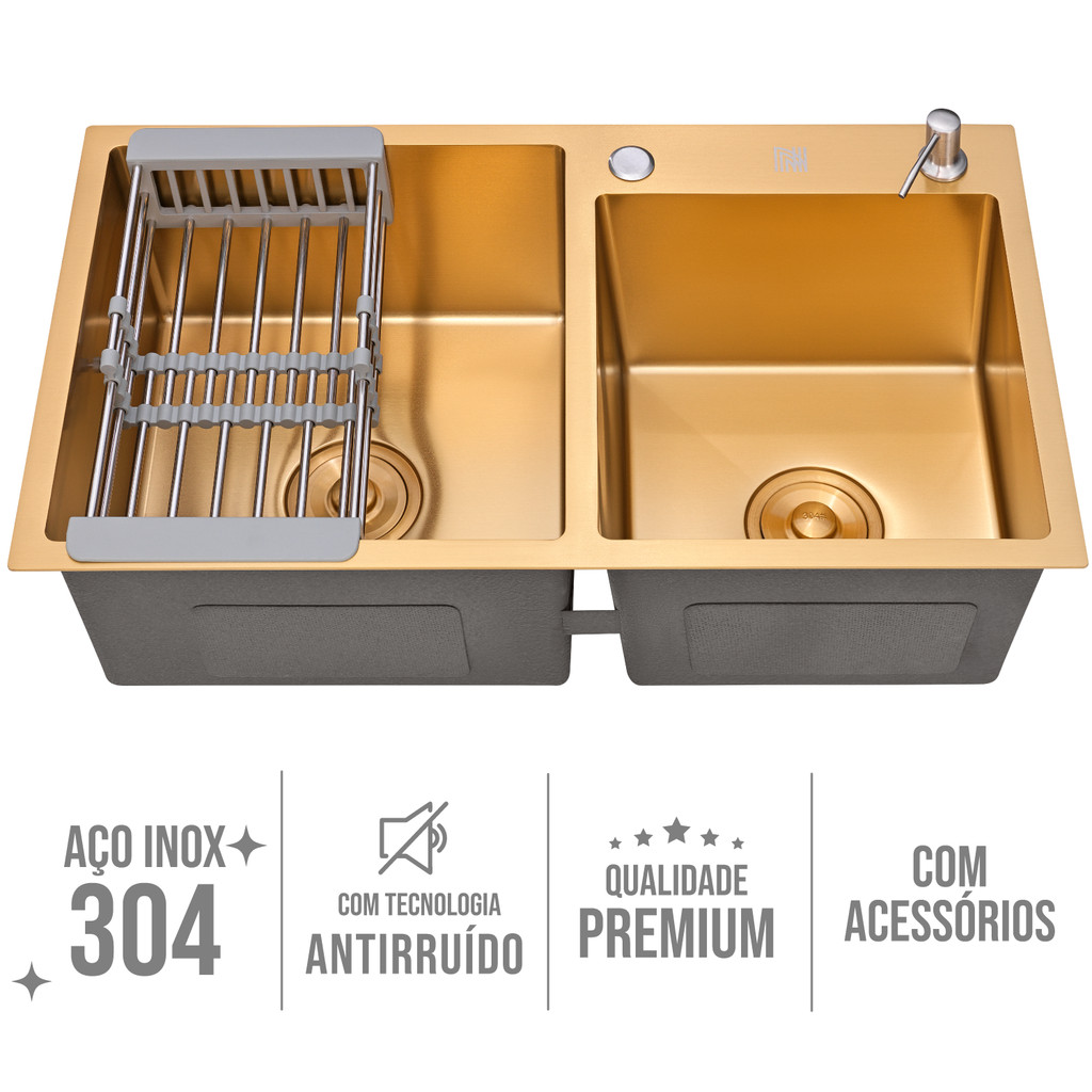 Cuba Cozinha Gourmet Pia Aço Inox Dupla Quadrada Dourado Gold