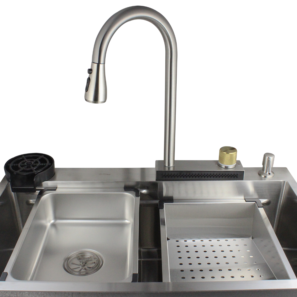 Cuba Cozinha Pia Lavador Copos Torneira Cascata Aço Inox 304
