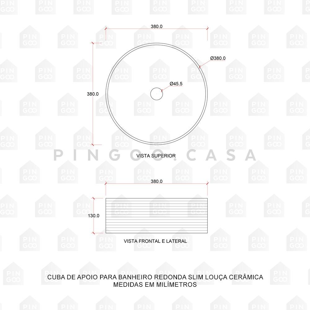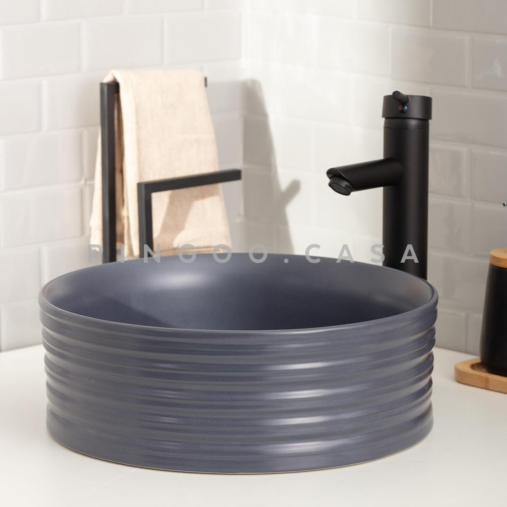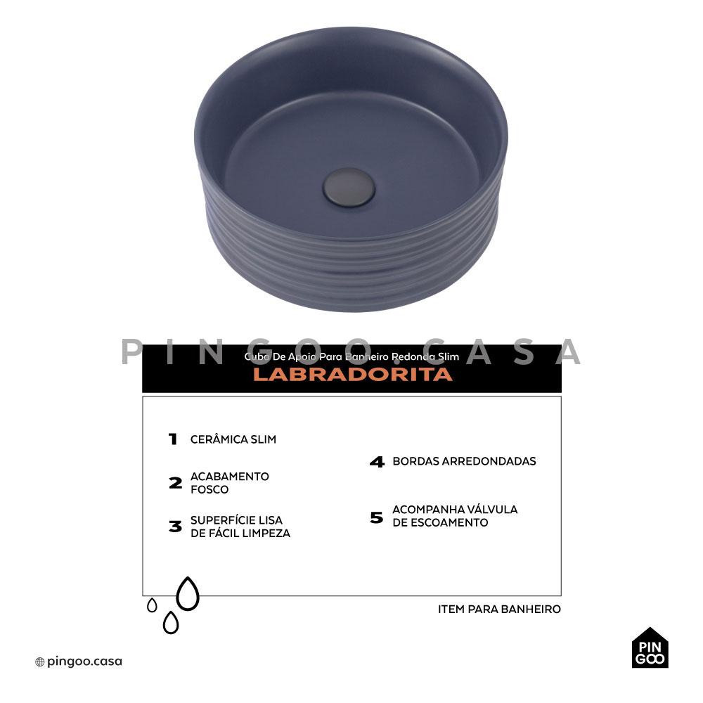 Cuba De Apoio Para Banheiro Redonda Slim Louça Cerâmica 38 cm Labradorita Pingoo - Cinza Fosco