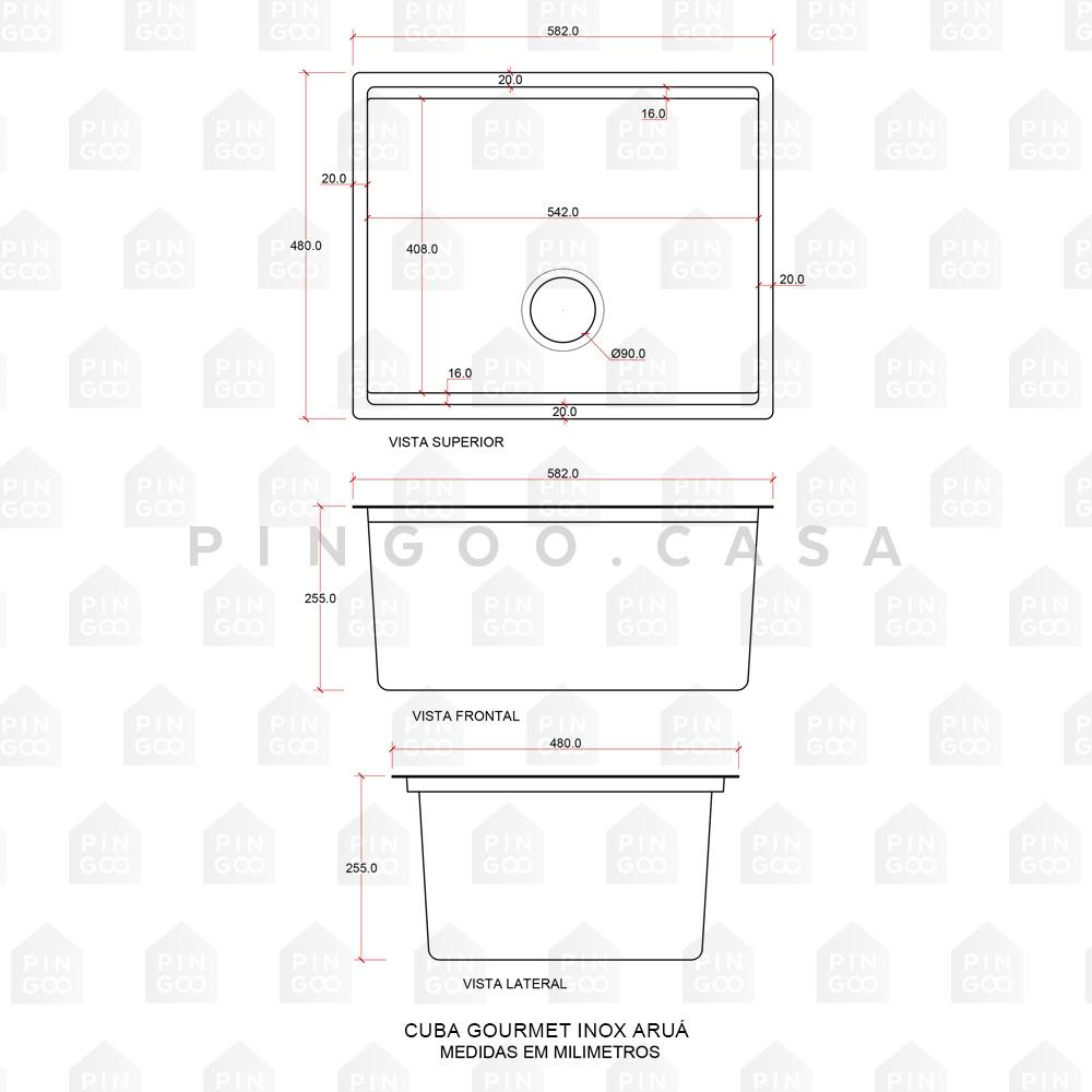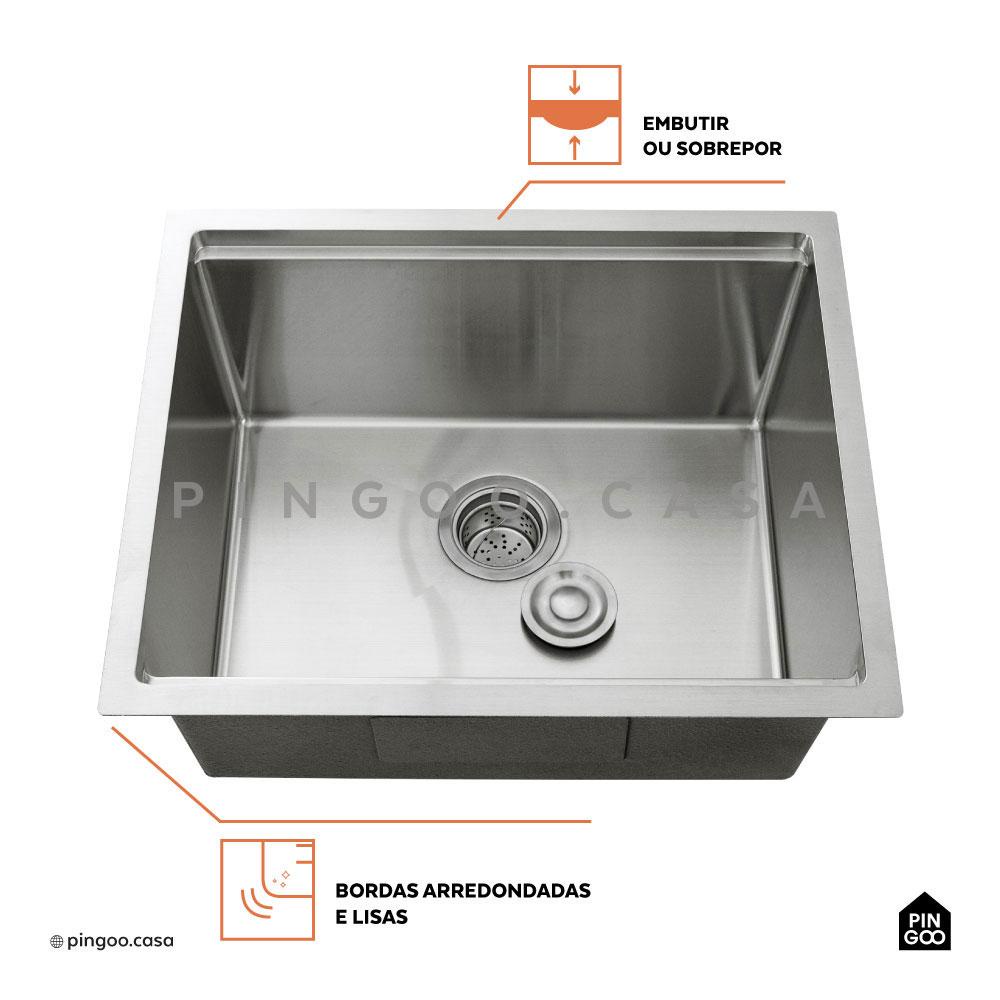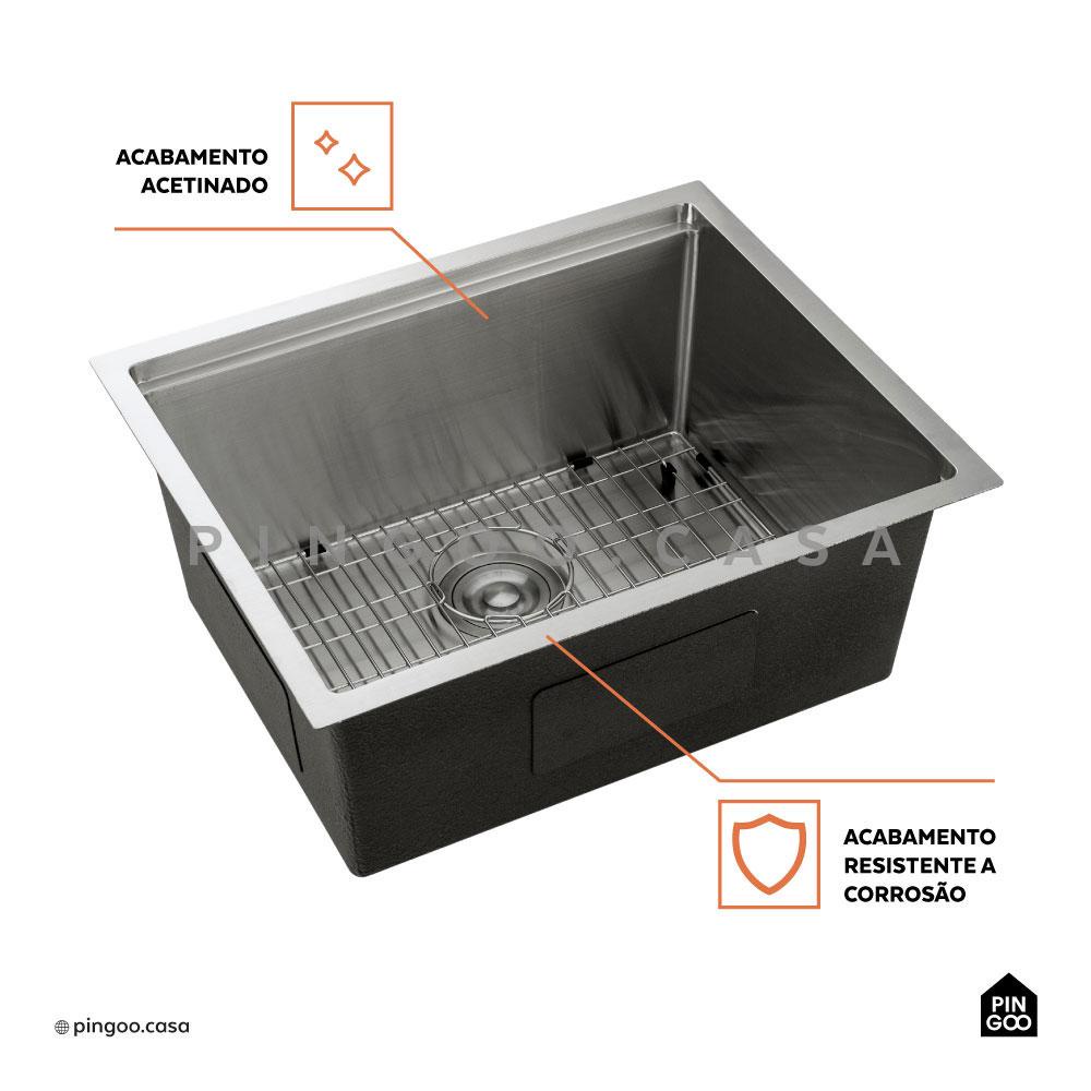 Cuba Para Cozinha Gourmet Aço Inox 304 Workstation Com Acessórios Aruá 58x48 cm Pingoo - Prata