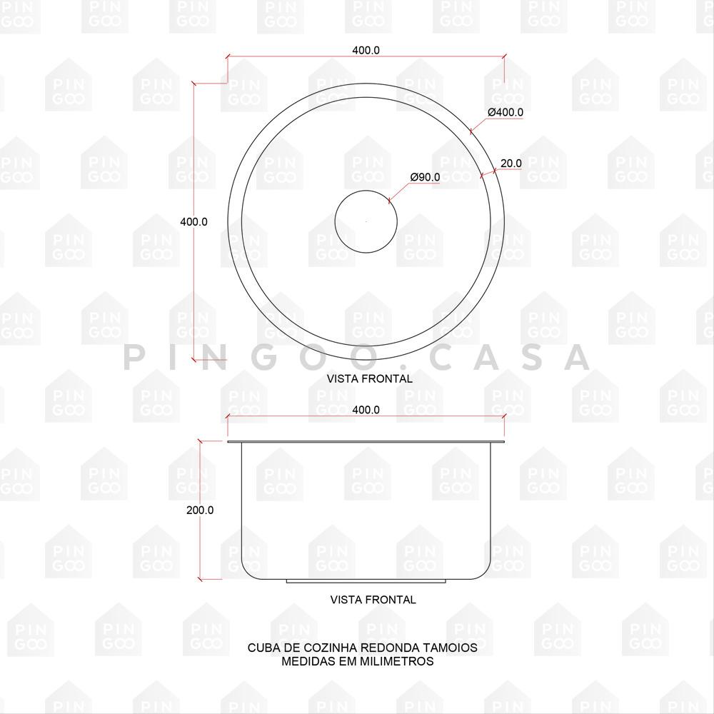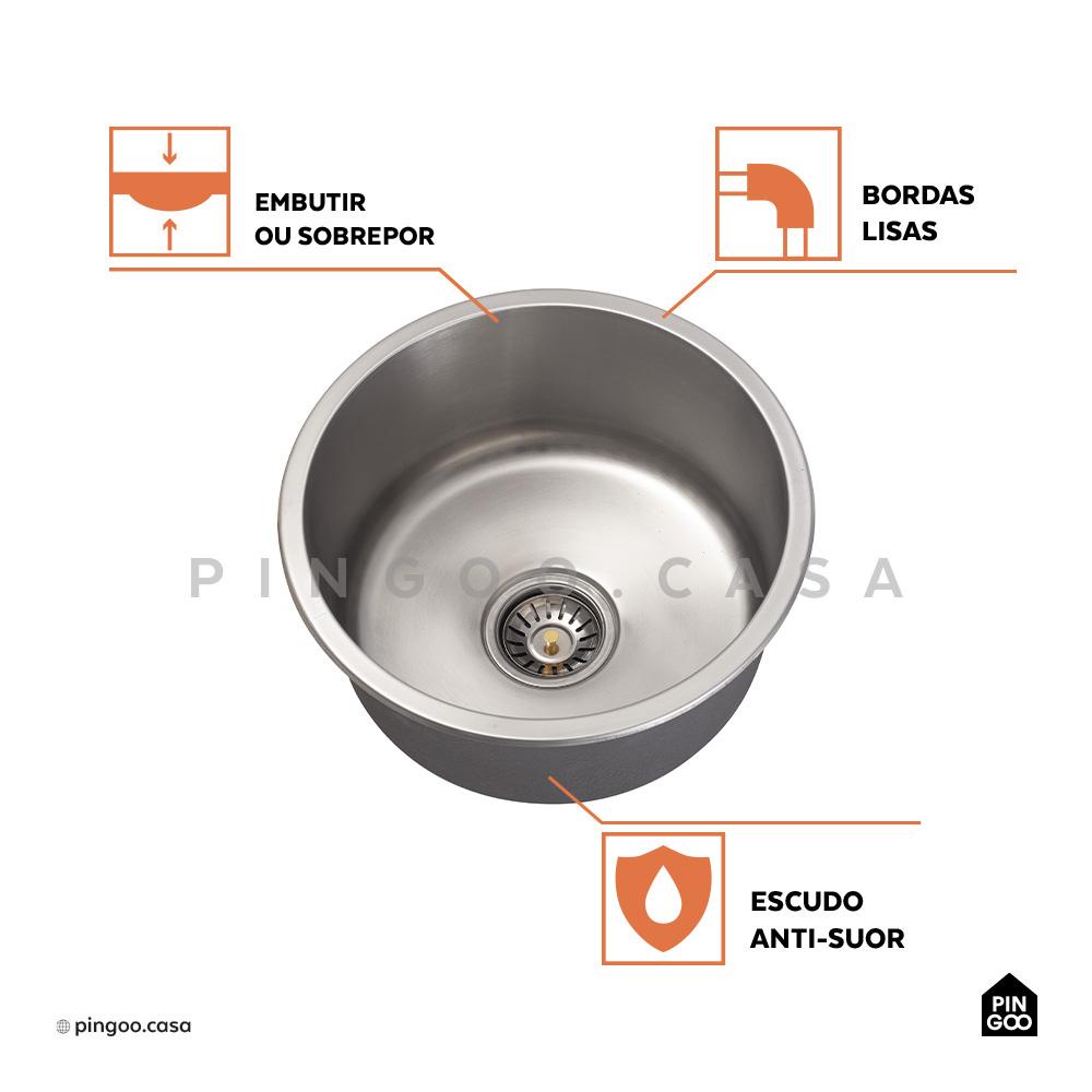 Cuba Para Cozinha Redonda Aço Inox 201 Tamoios 40 cm Pingoo - Prata