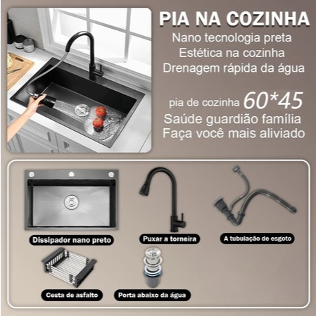 Cuba Para Pia Gourmet Preta Cozinha Aço Inox Com Comcesta de Drenagem Acessório!!!
