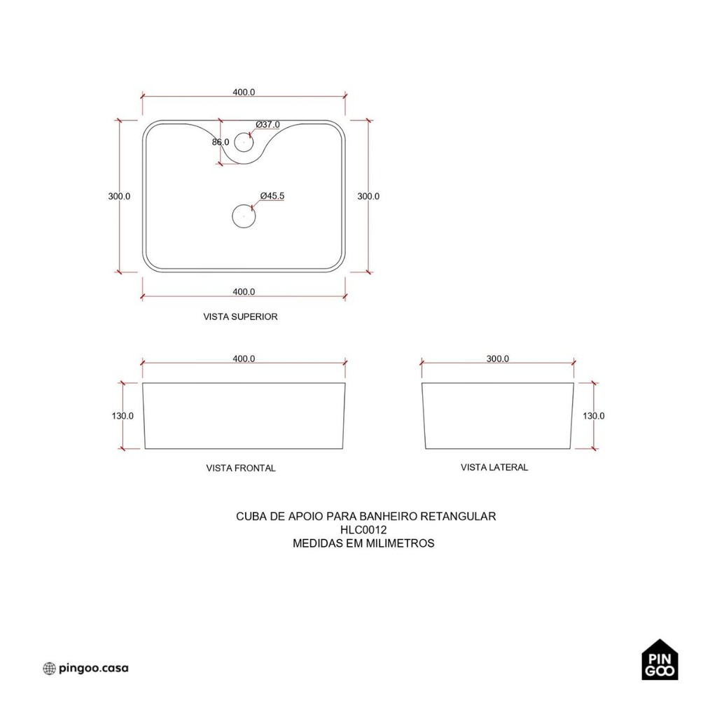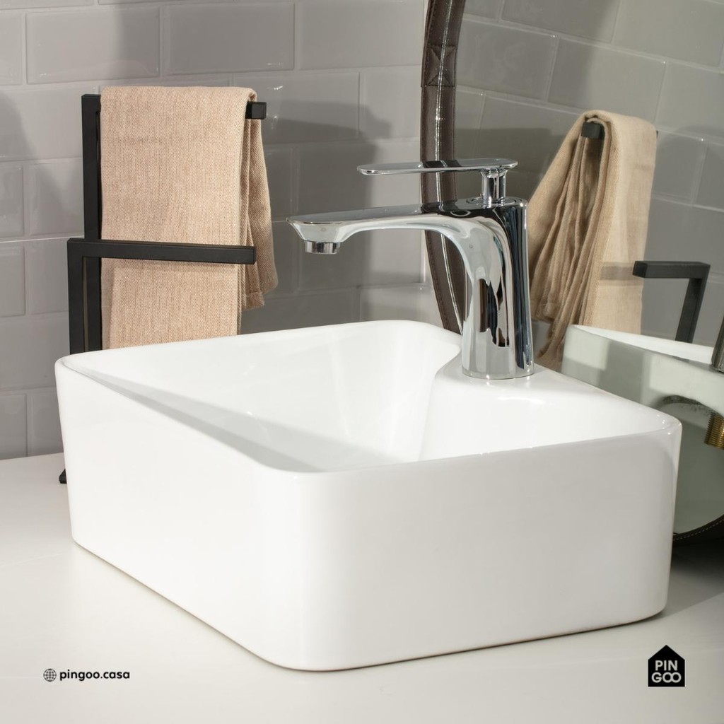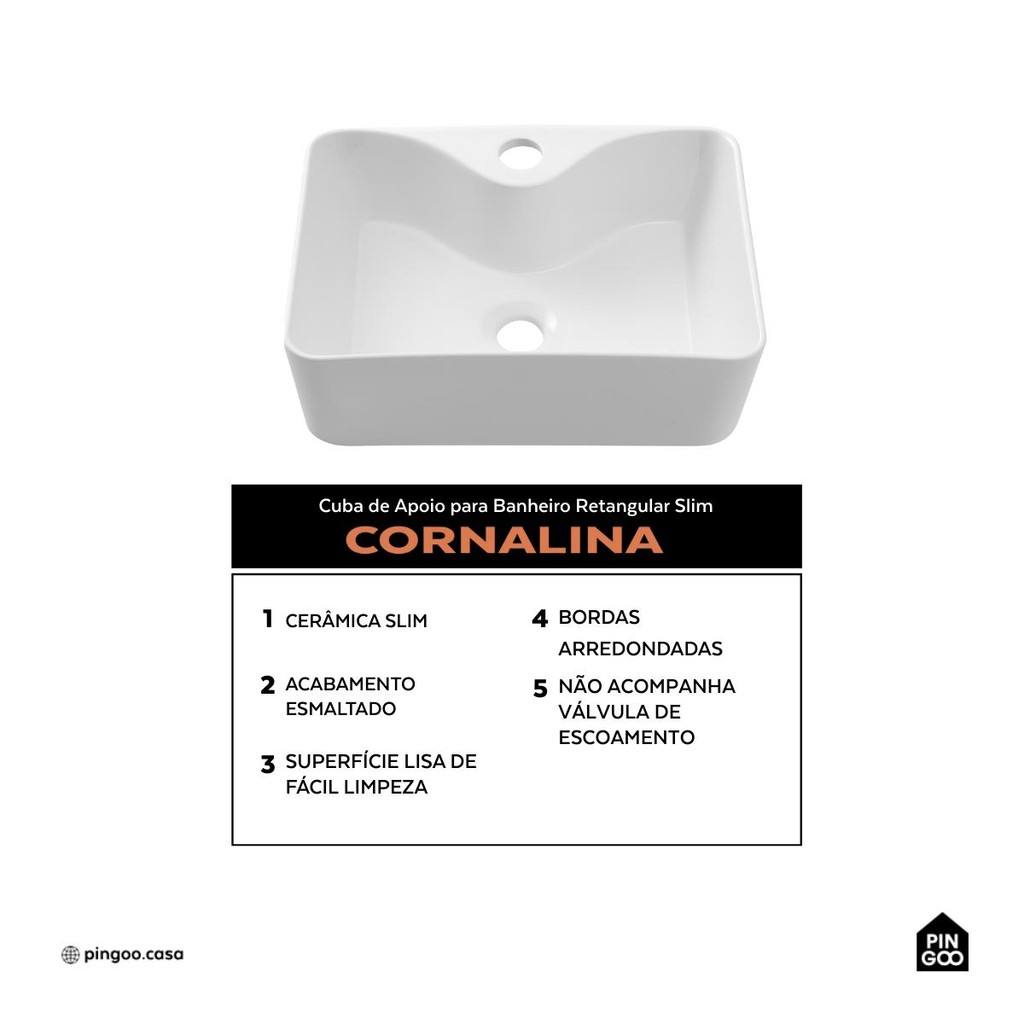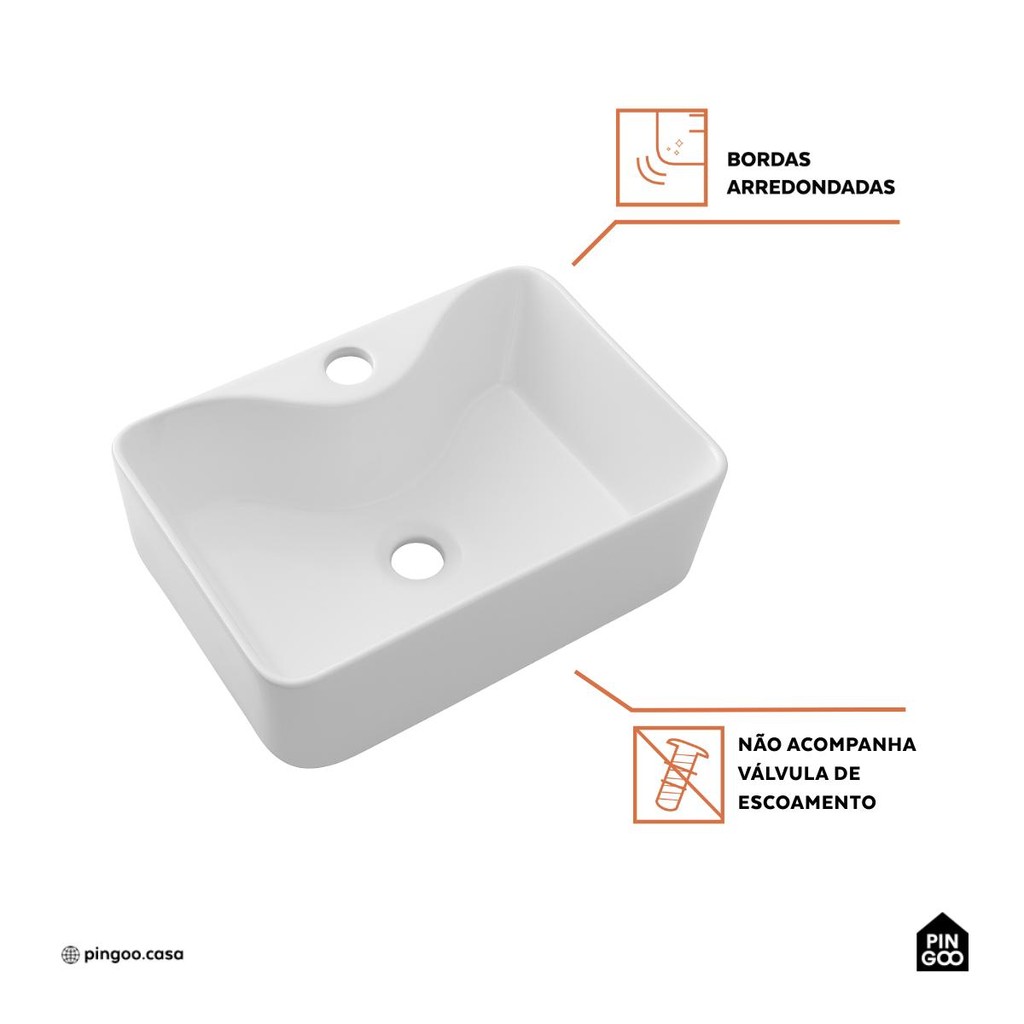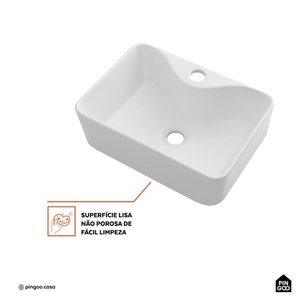 Cuba de Apoio Slim Retangular Sem Válvula para Banheiro Louça Cerâmica 40x30cm Cornalina Pingoo - Branco