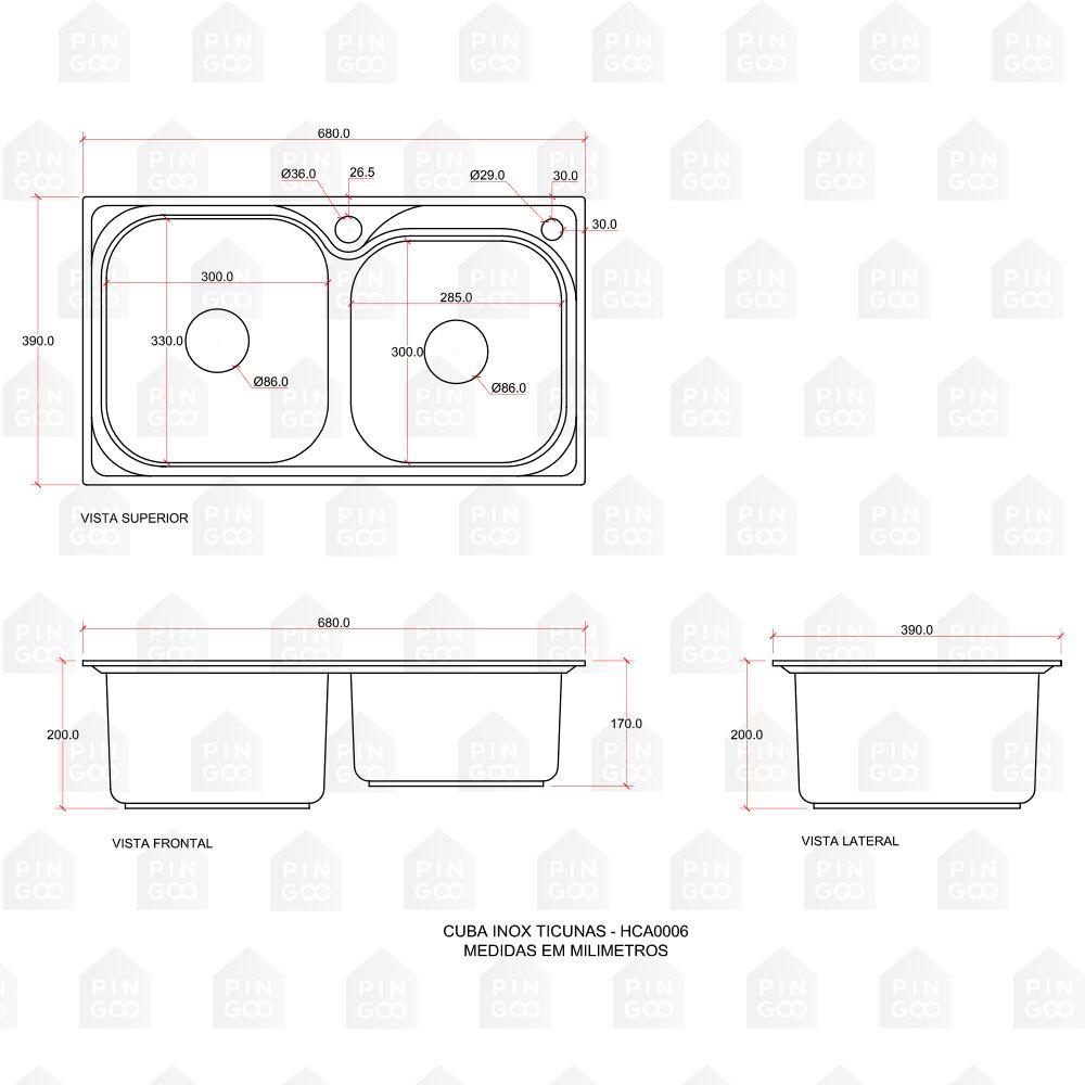 Cuba para Cozinha Aço Inox com Lixeira e Acessórios Ticunas e Torneira Monocomando Envira Pingoo - Preto