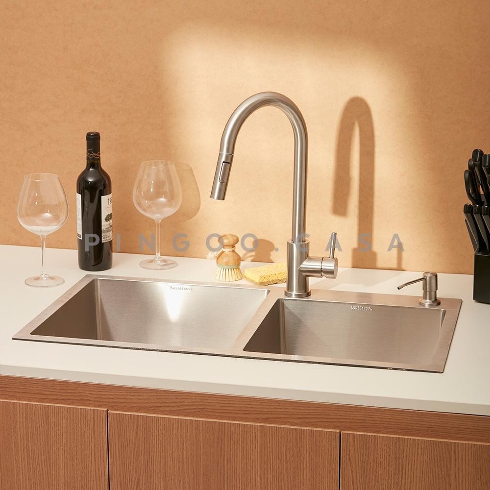 Cuba para Cozinha Awá e Torneira Misturador Monocomando em Aço Inox Iriri Pingoo - Prata