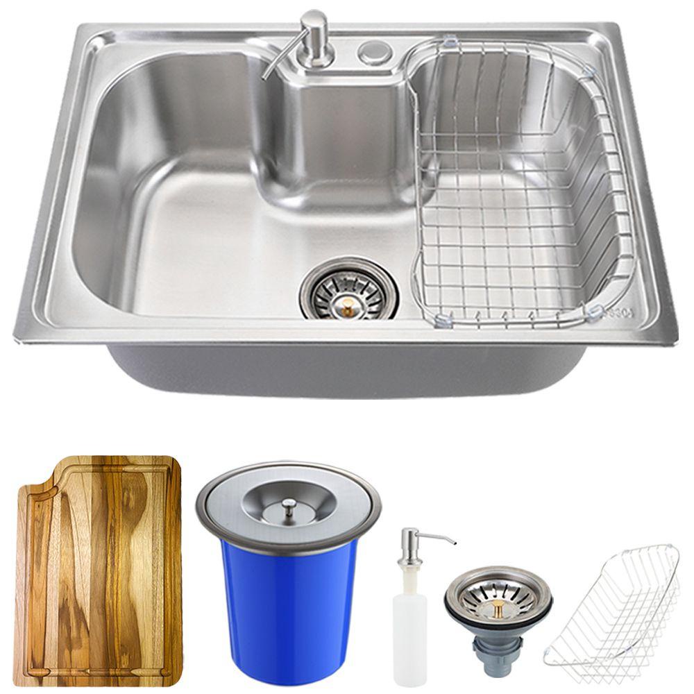 Cuba para Cozinha pia com Acessórios Inox Carajás Tábua De Corte e lixeira Pingoo