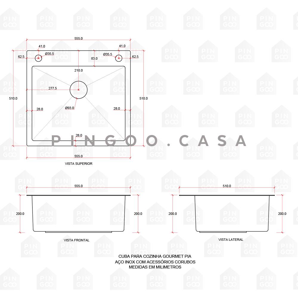 Cuba para cozinha gourmet pia aço inox com acessórios Corubos Pingoo - Preto