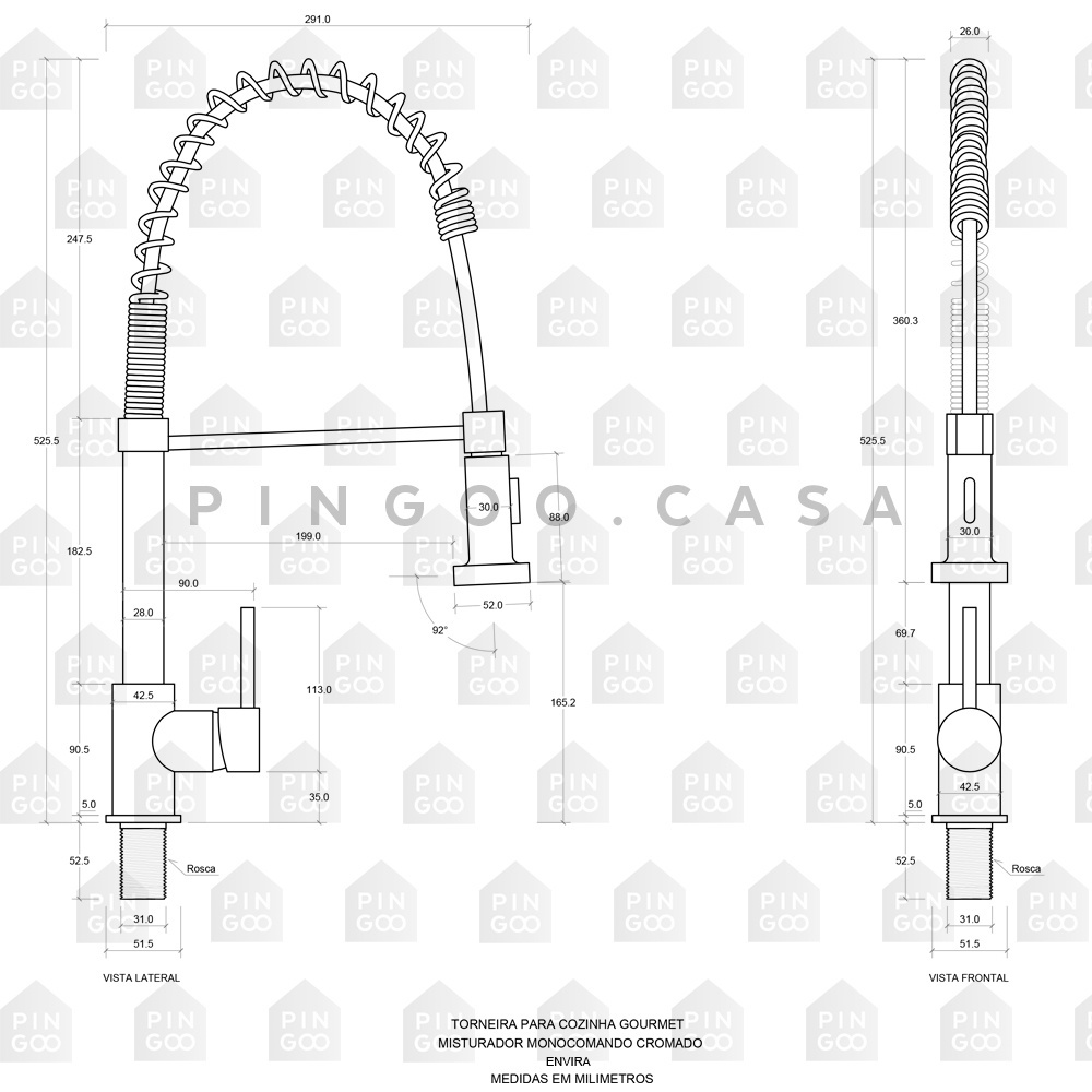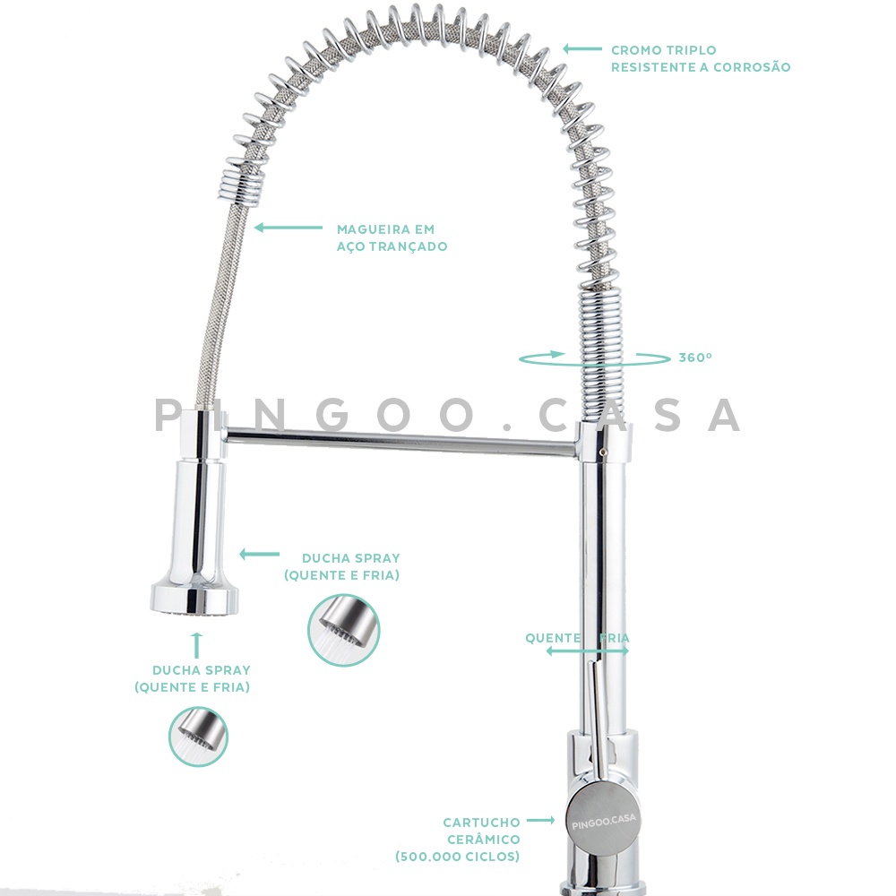 Cuba para cozinha gourmet pia aço inox com acessórios e tábua de corte Carajás e Torneira monocomando Envira Pingoo