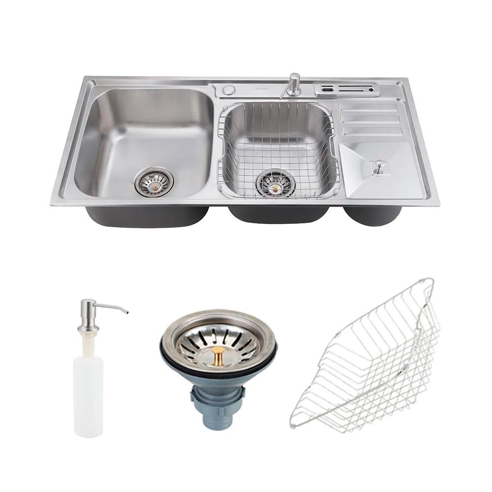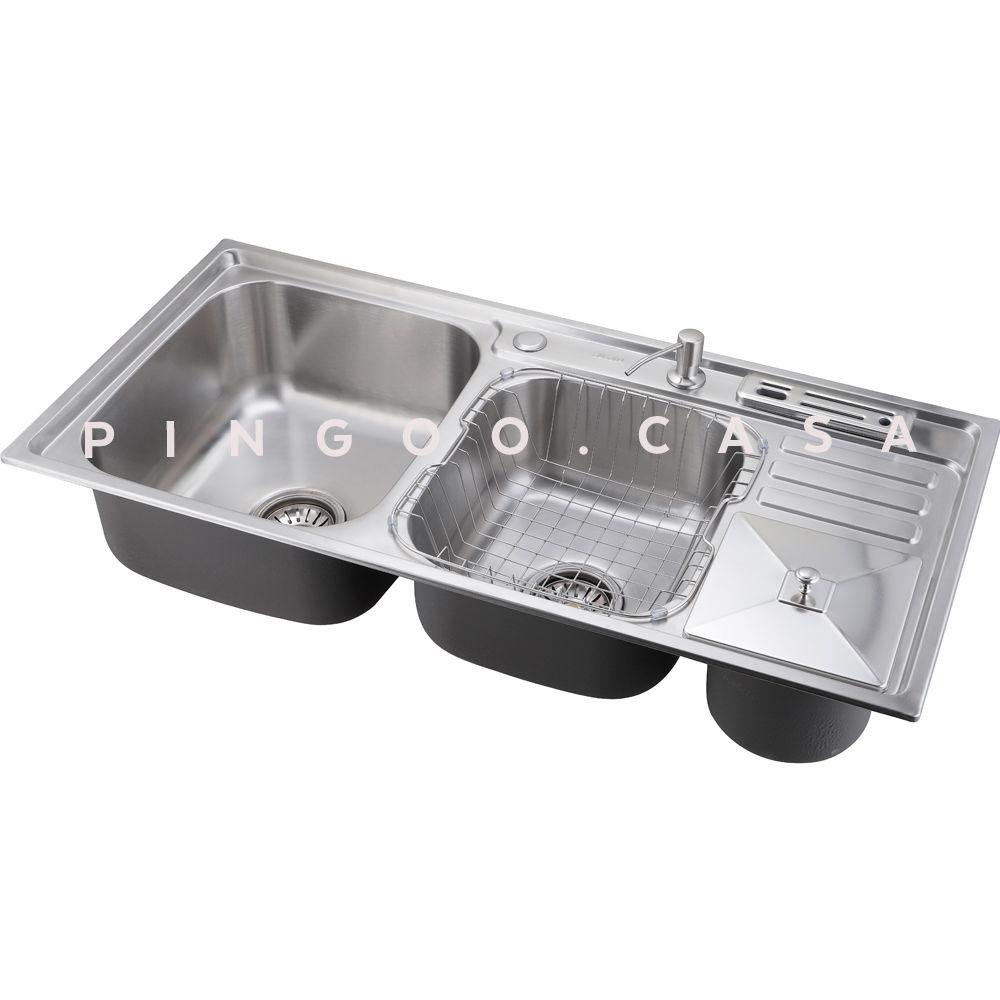 Cuba para cozinha pia dupla em aço inox com acessórios e lixeira Caiapós Pingoo