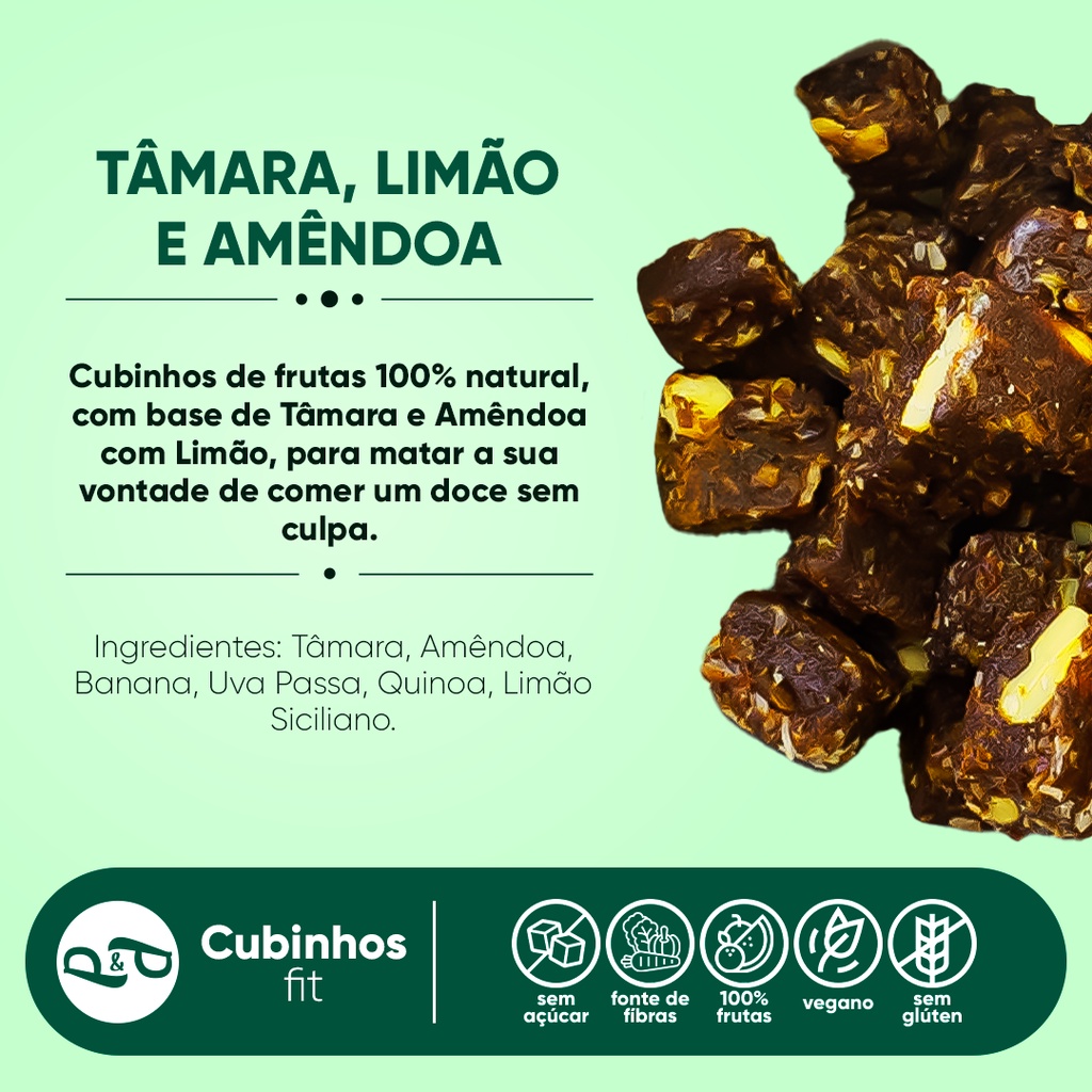 Cubinho Doce Fit Tâmara, Amêndoa e Limão Sem Açúcar Sem Glúten - 250g