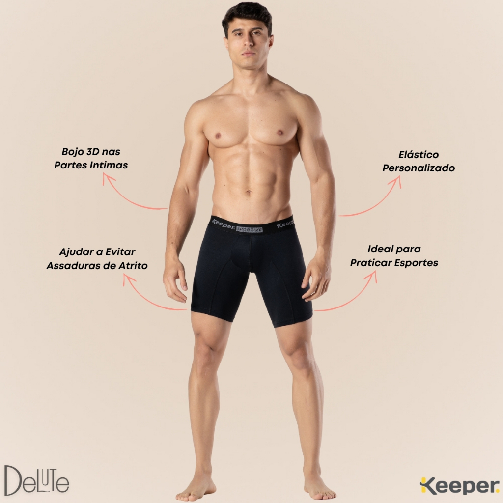 Cueca Boxer keeper Modelo Long Leg Adulto Esportiva Antiassaduras Lisa Masculina Perna Comprida