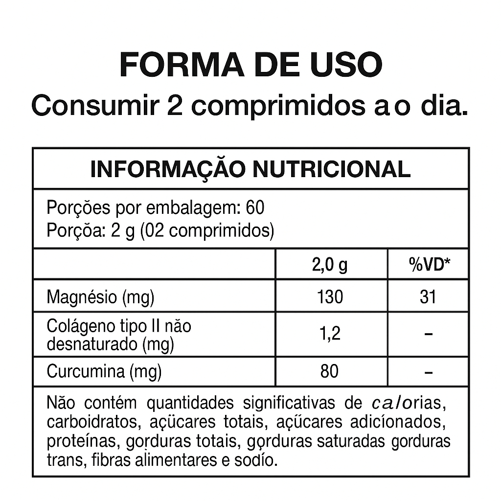 Curcumina+ Colágeno tipo II + Malato de magnésio 1000mg 120c
