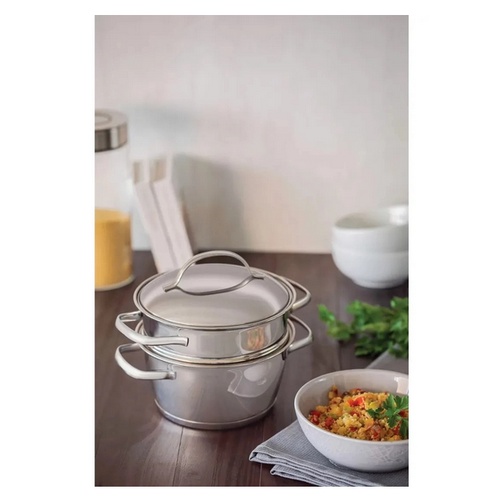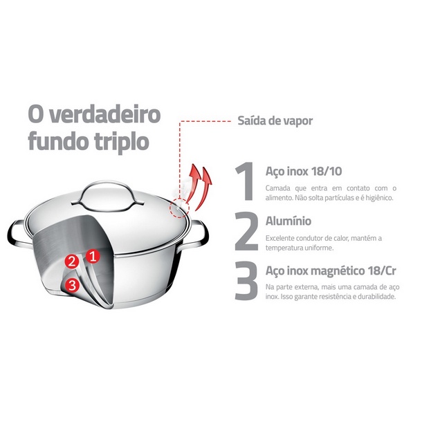 Panela Cuscuzeira Cozi Vapor Aço Inox Fundo Triplo P/ Fogão de Indução Qualidade, Elegância e Sofisticação Tramontina