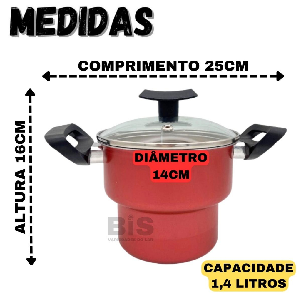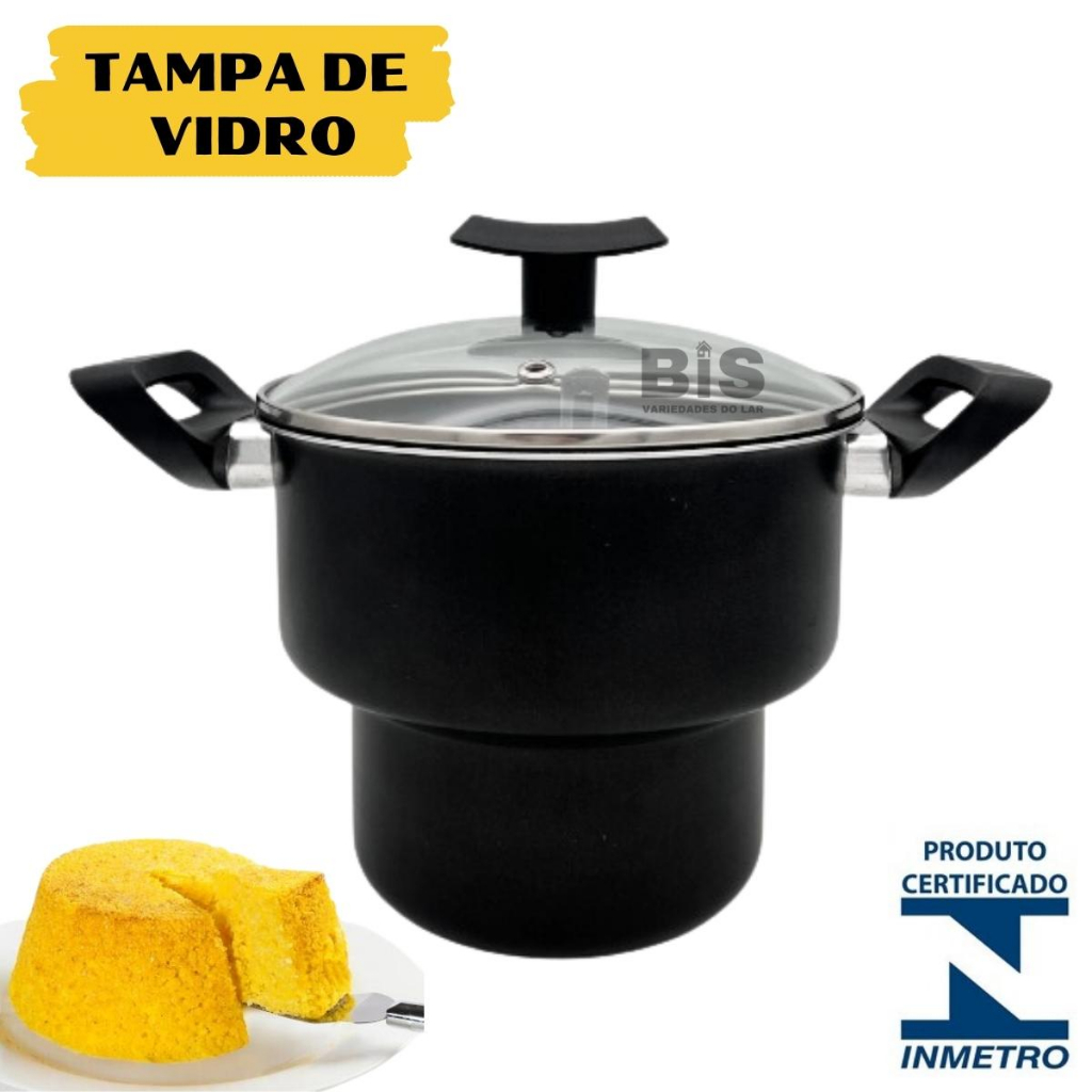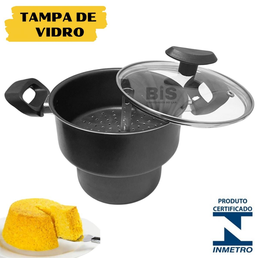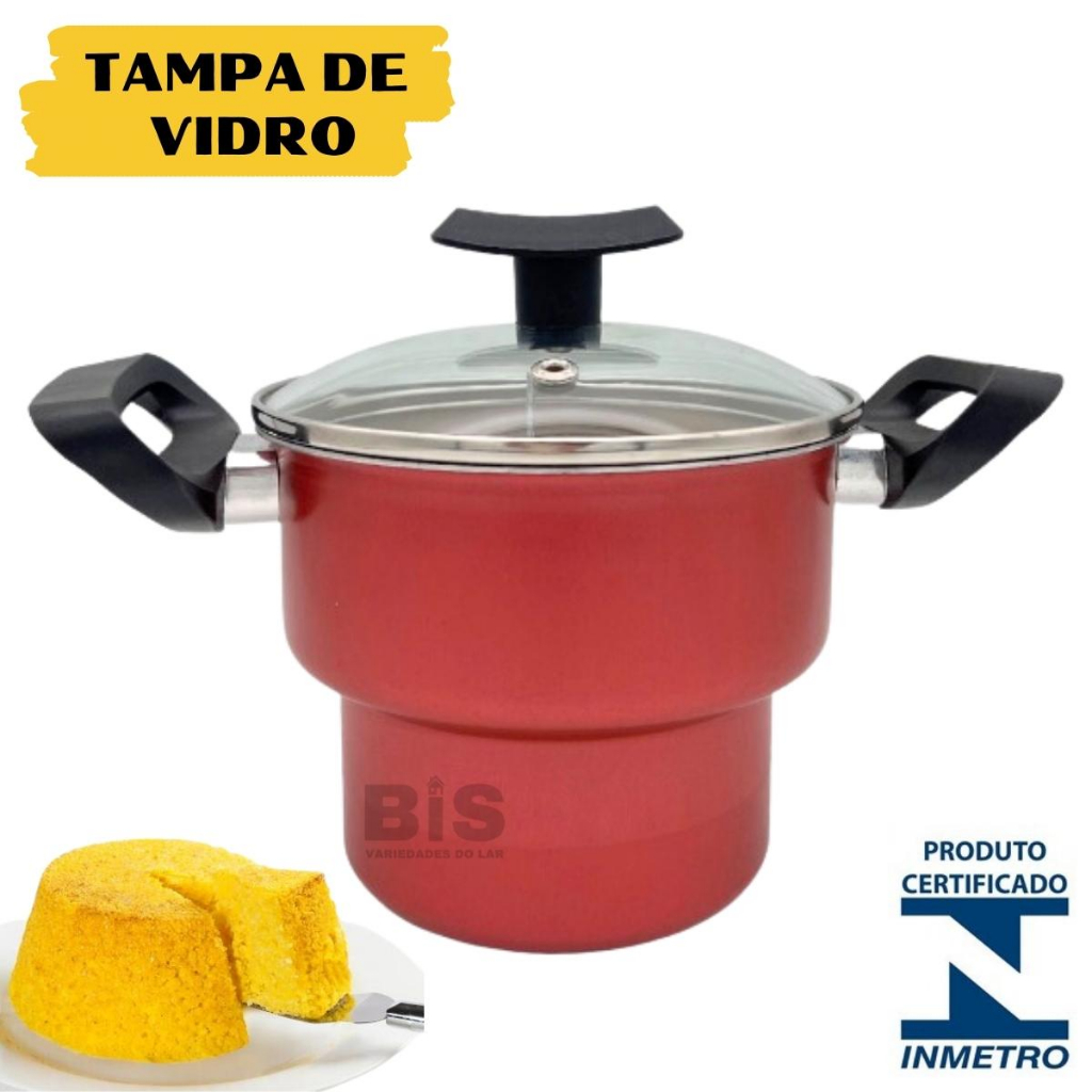 Cuscuzeiro Antiaderente Com Tampa De Vidro N14 Teflon Nordeste Mini Cuscuzeira Preta ou Cereja