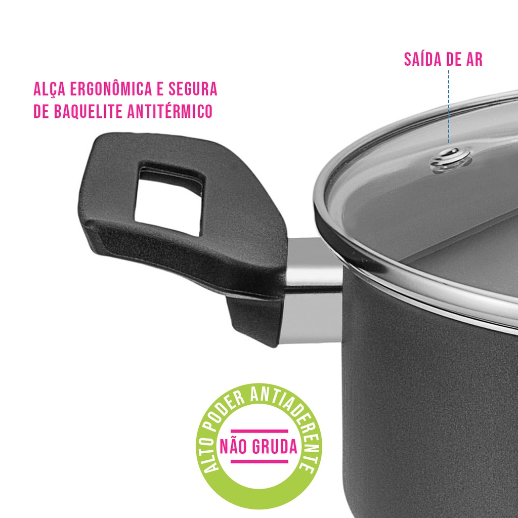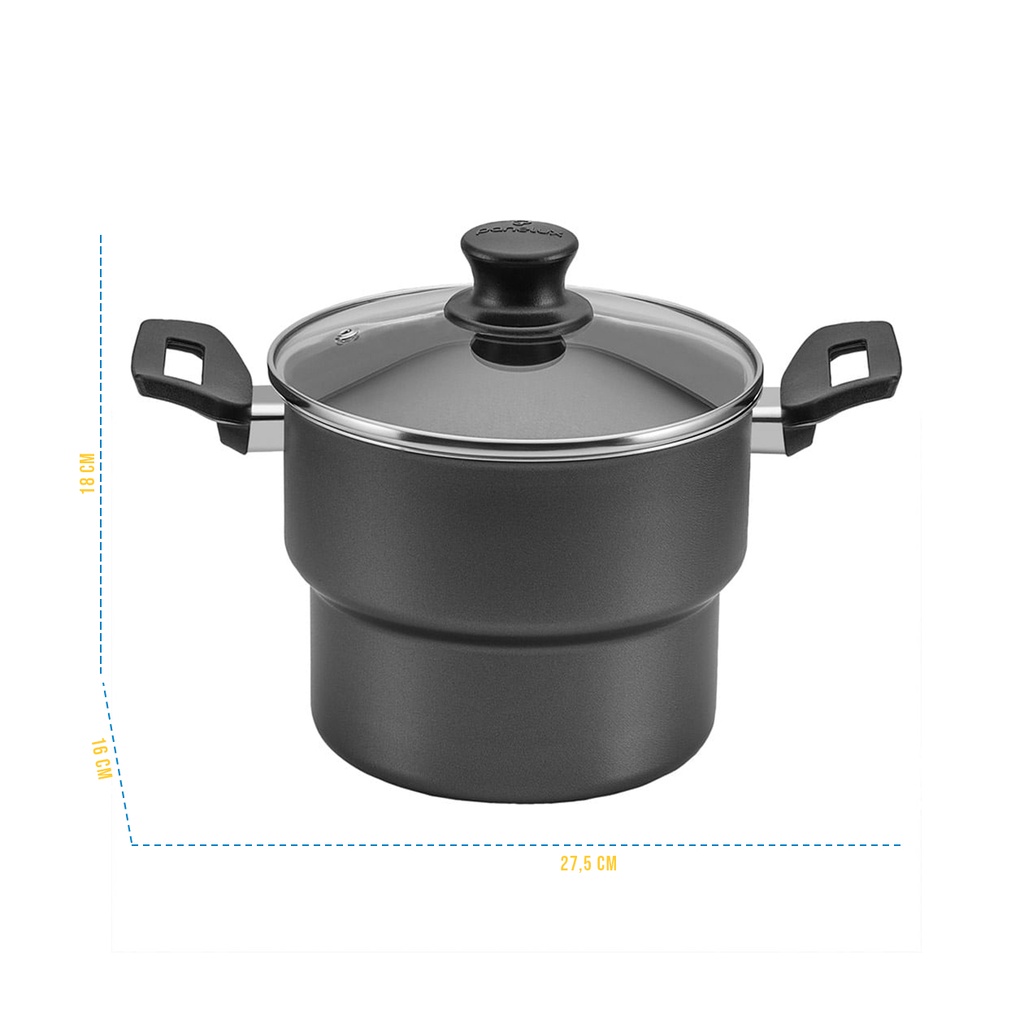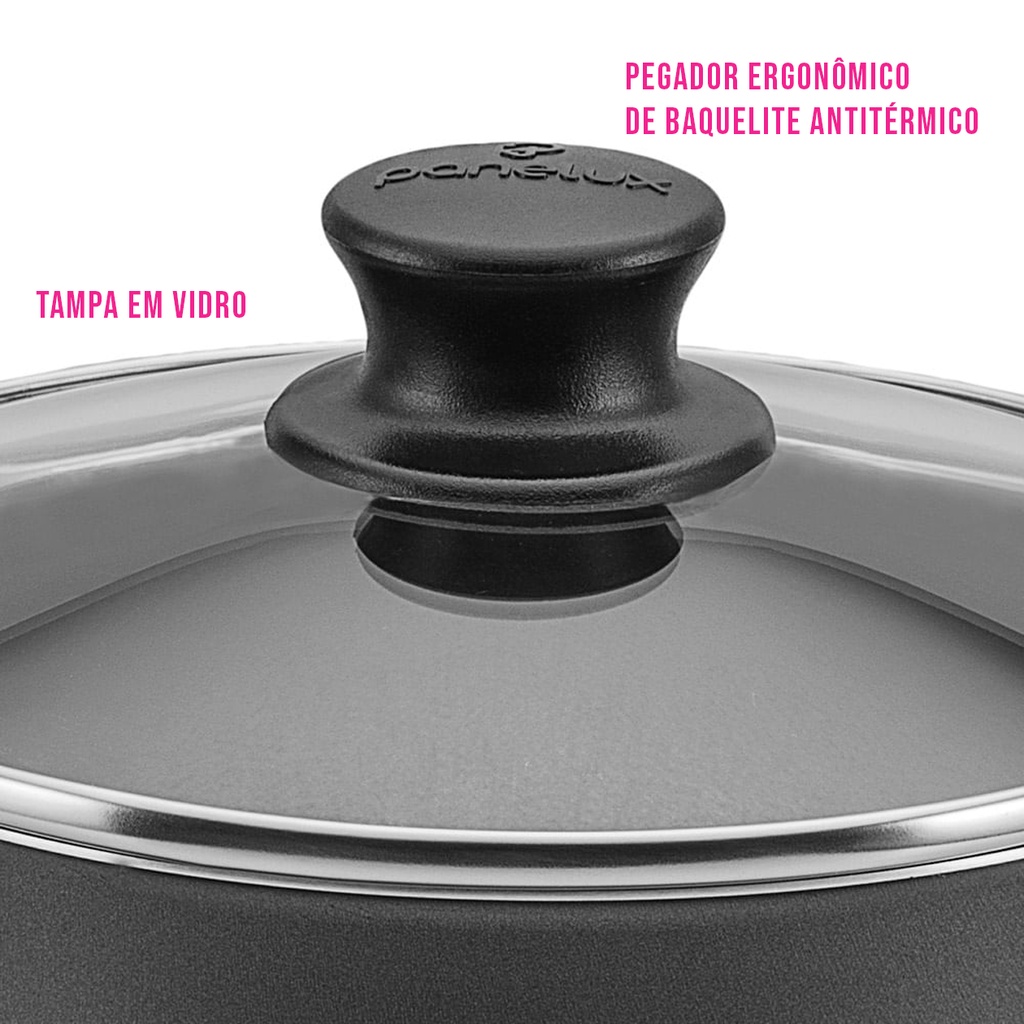 Cuscuzeiro Antiaderente Panela de Cuscuz Tampa de Vidro Teflon Grafite 16cm Panelux Magnific