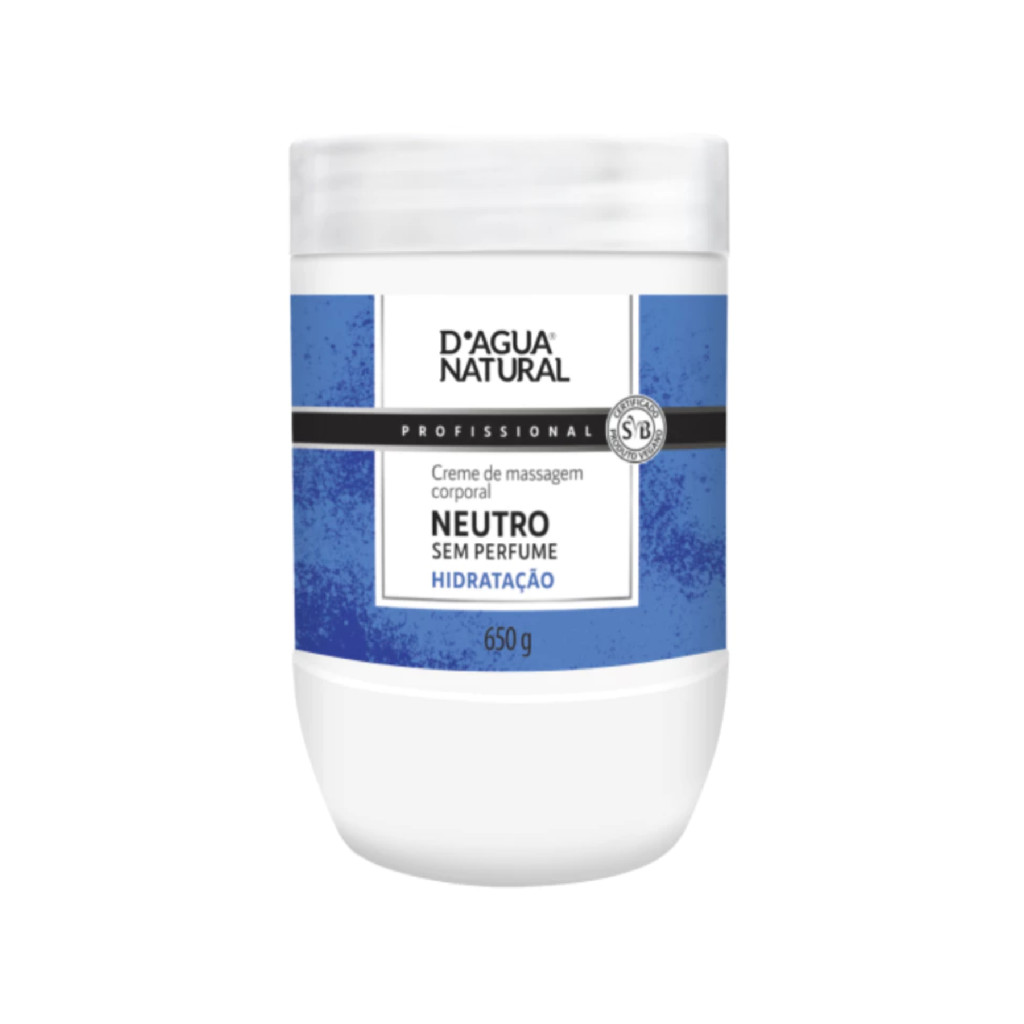 D'agua Natural Creme Neutro para Massagem - 6 Unidades de 650g para Uso Profissional