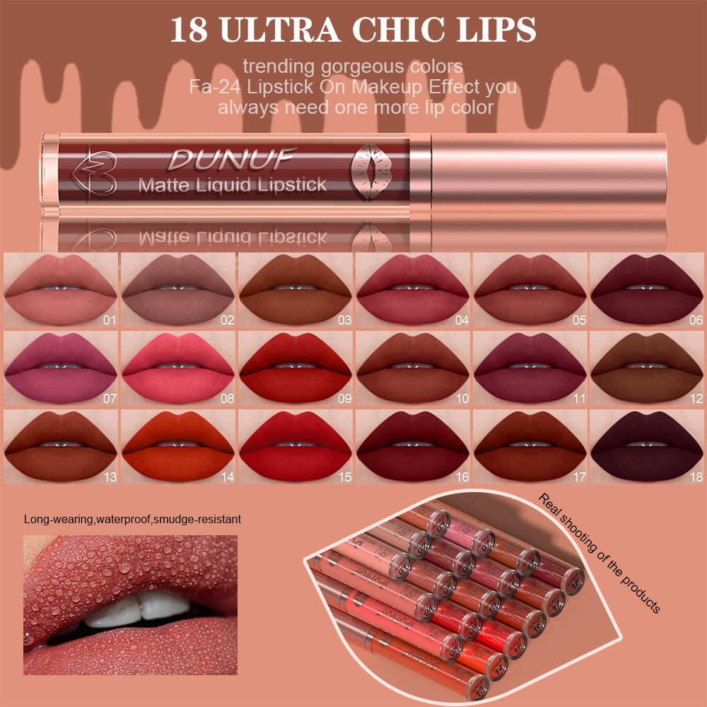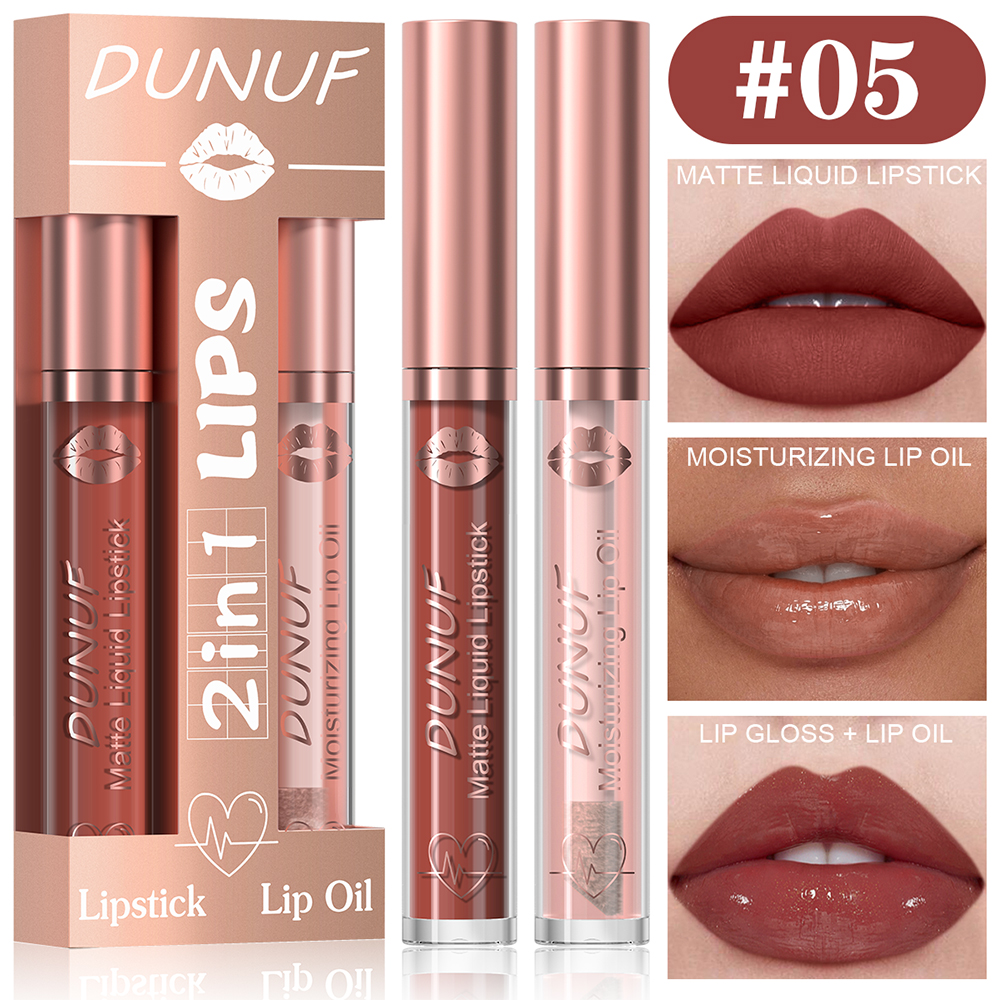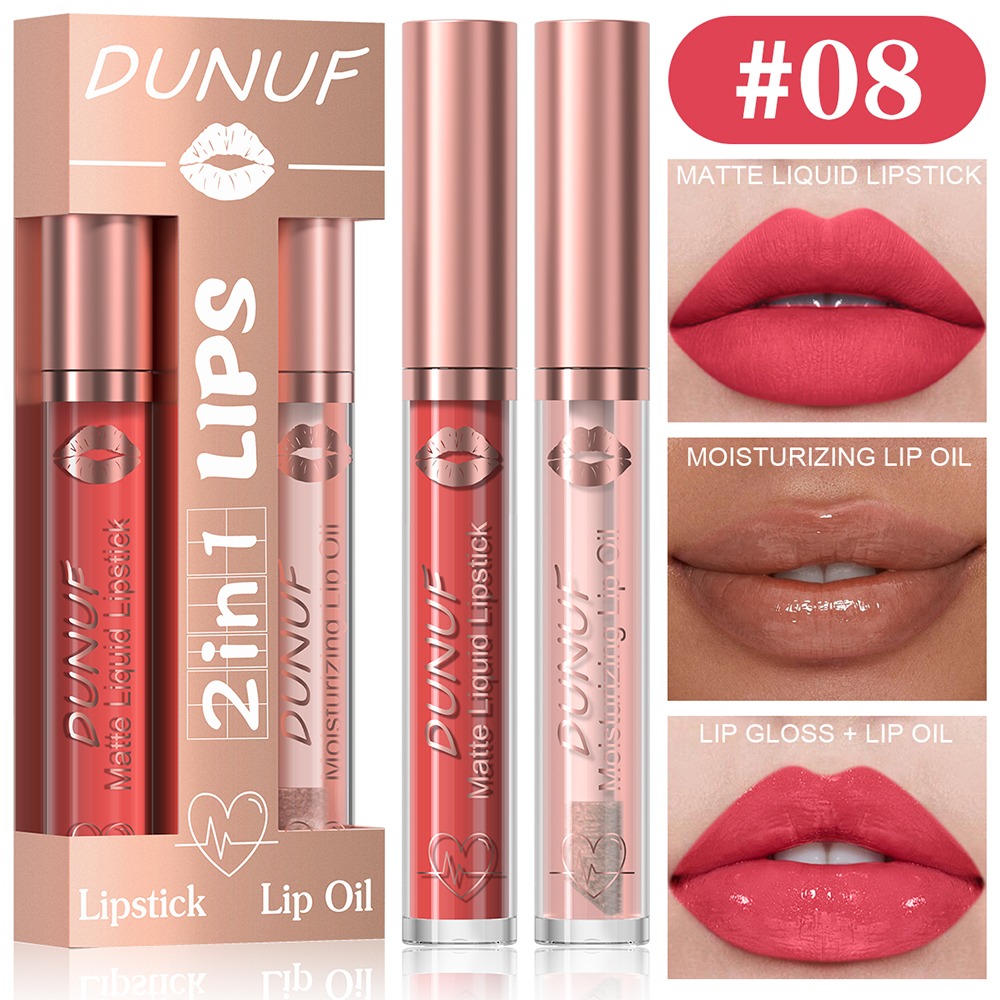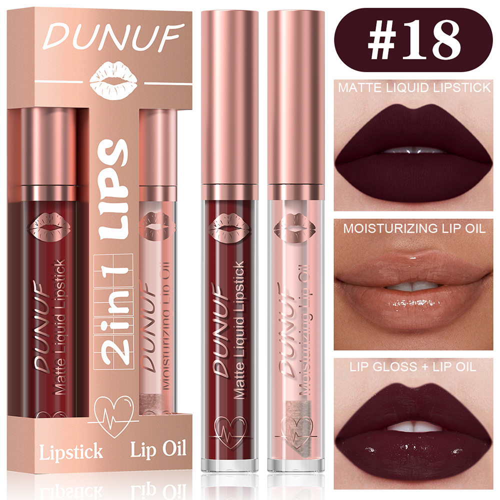 DUNUF Conjunto de Brilho Labial + Óleo Labial 2 Peças, Batom Matte À Prova D'Água e Hidratante.