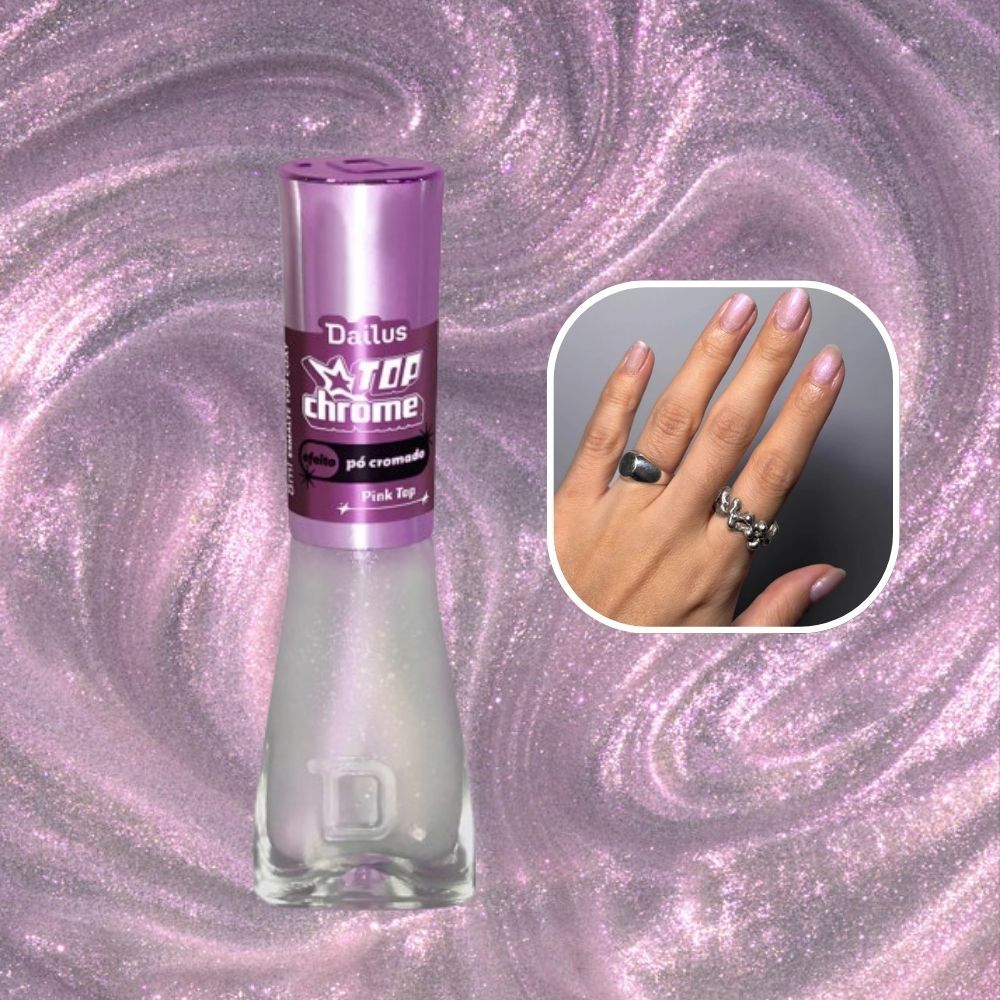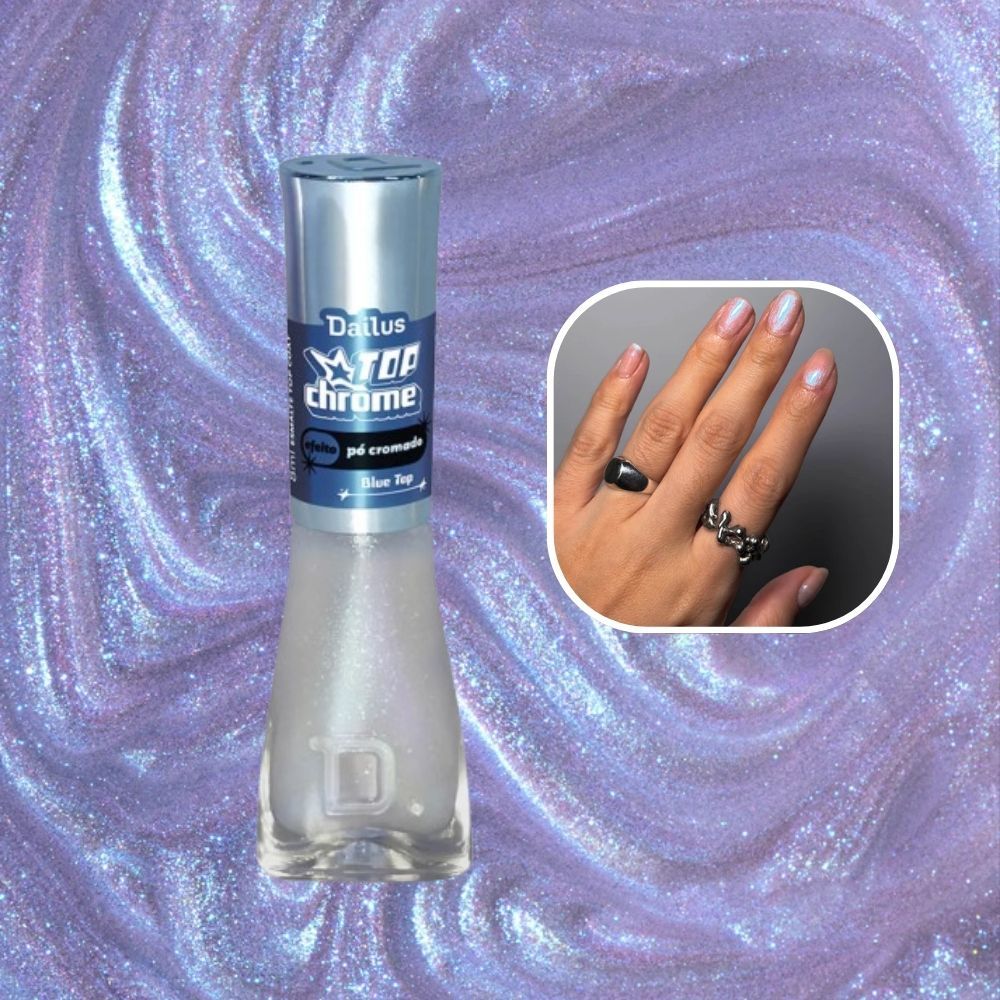 Dailus Esmalte Coleção Top Chrome + Top Glass Efeito Pó Cromado Gel Brilhante 8ml *Escolha seu Kit*