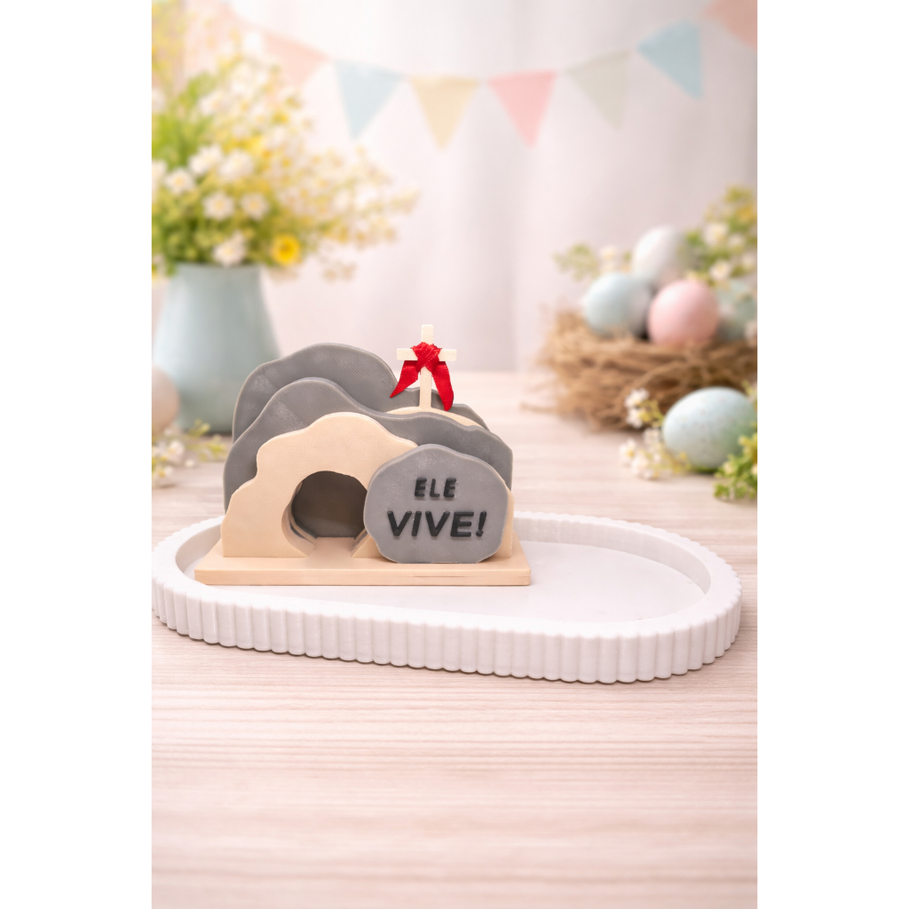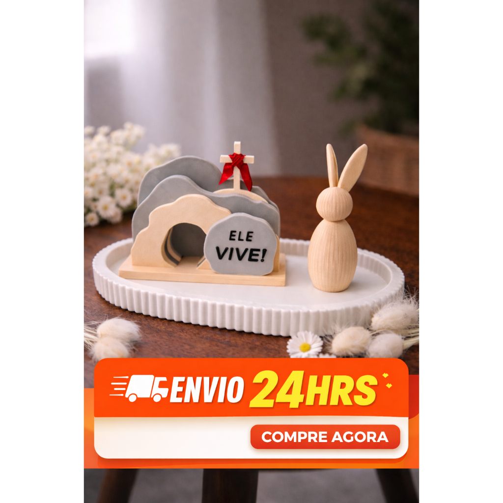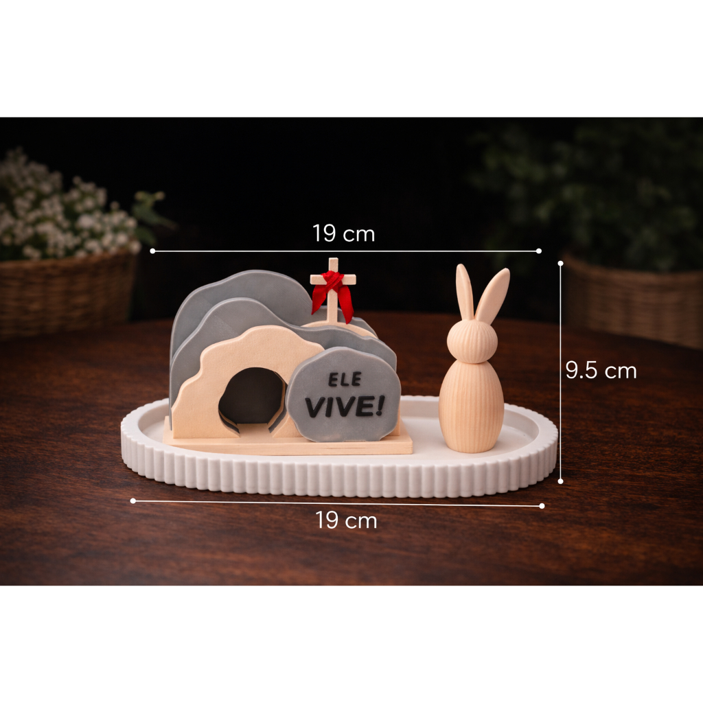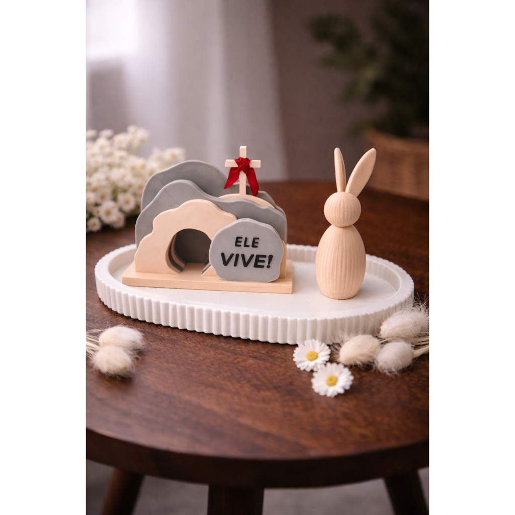 Decoração de Páscoa Ele vive + Porta Objetos + Coelho Minimalista