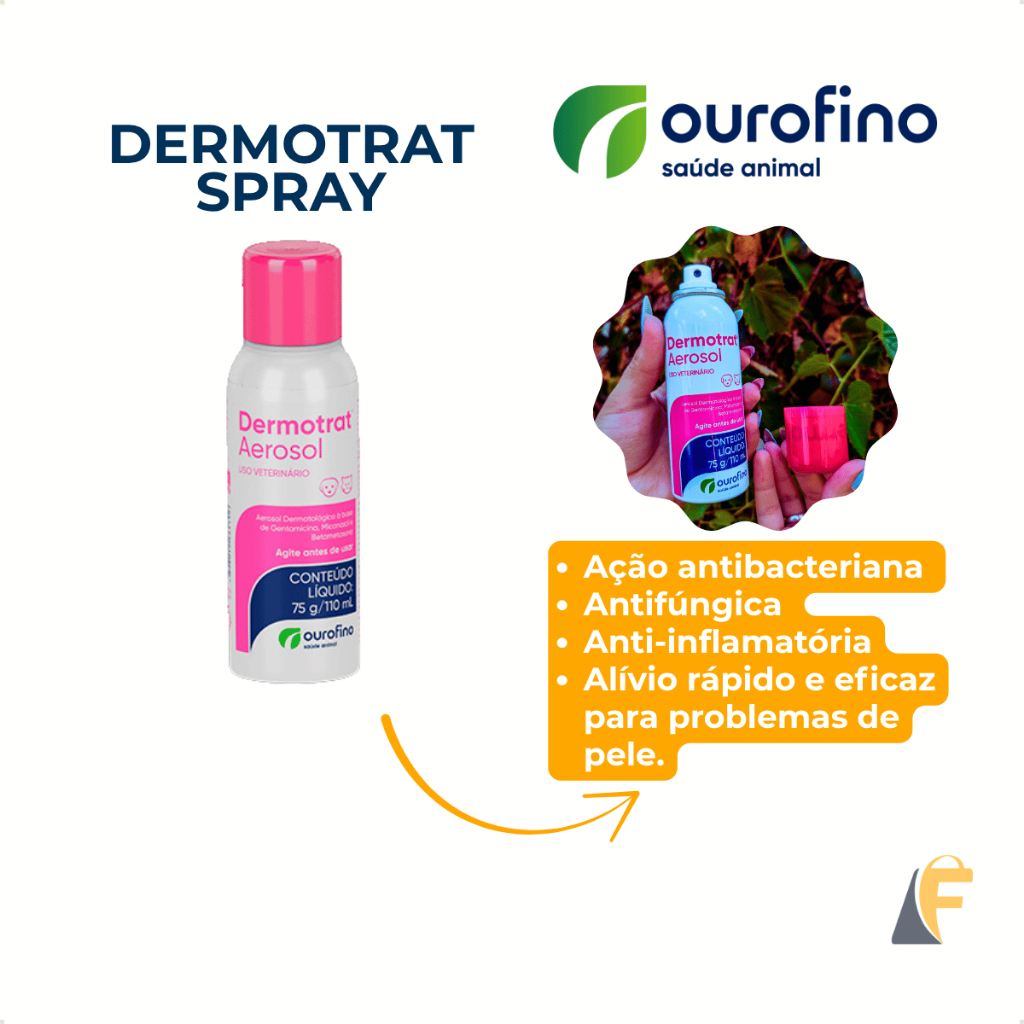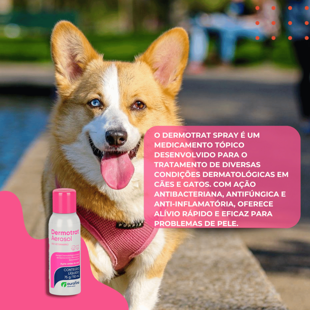 Dermotrat Spray Cães Cachorro Gatos Anti-inflamatório Antifúngica Antibacteriana Aerosol 110ml