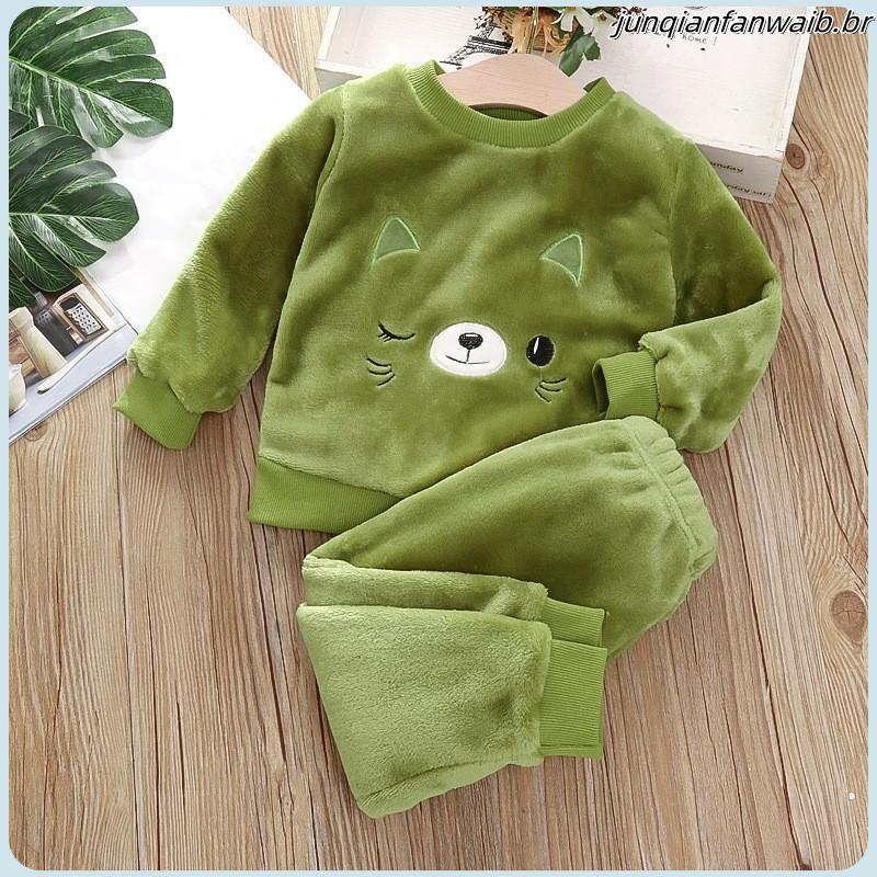 Desenho Animado Baby Boy Girl Winter Warm Thicken Flannel Fleece Tops + Pants Conjunto De 2 Peças Pijamas Crianças Pequ
