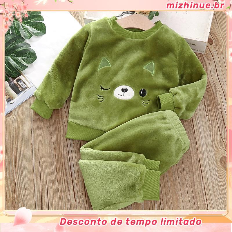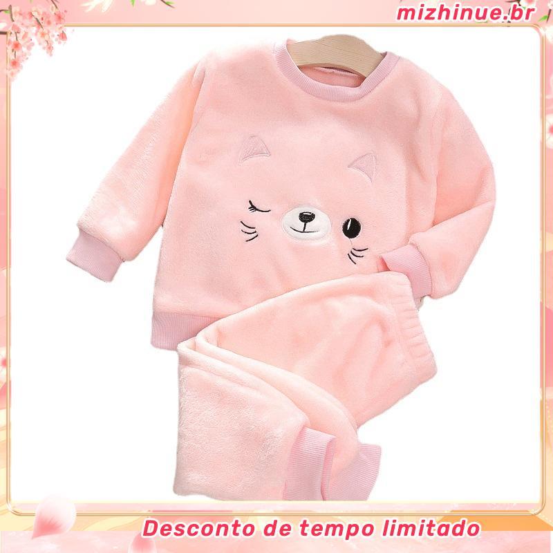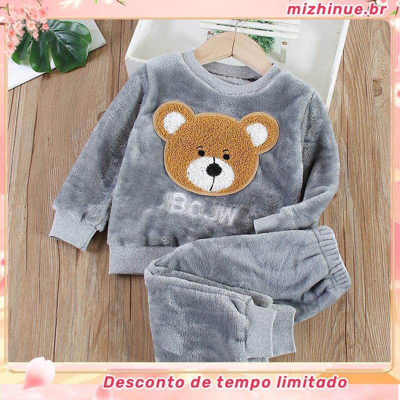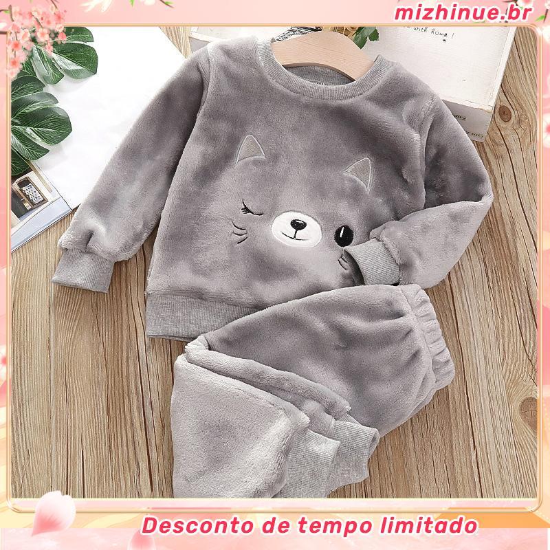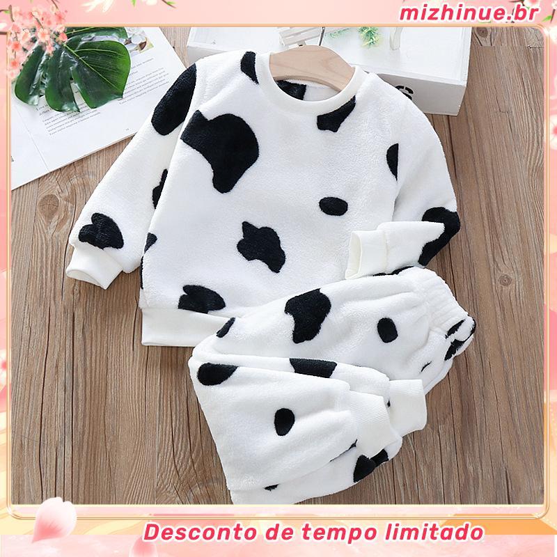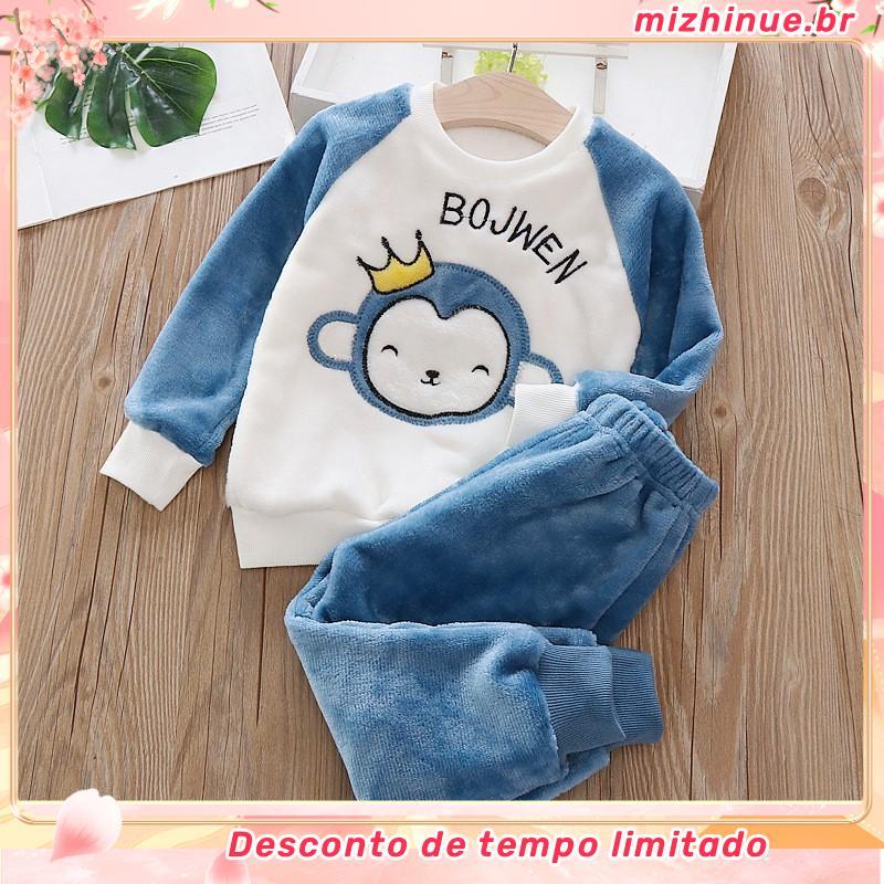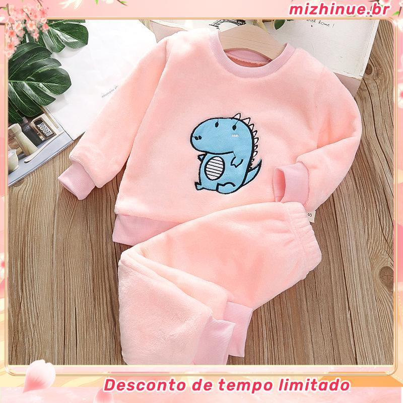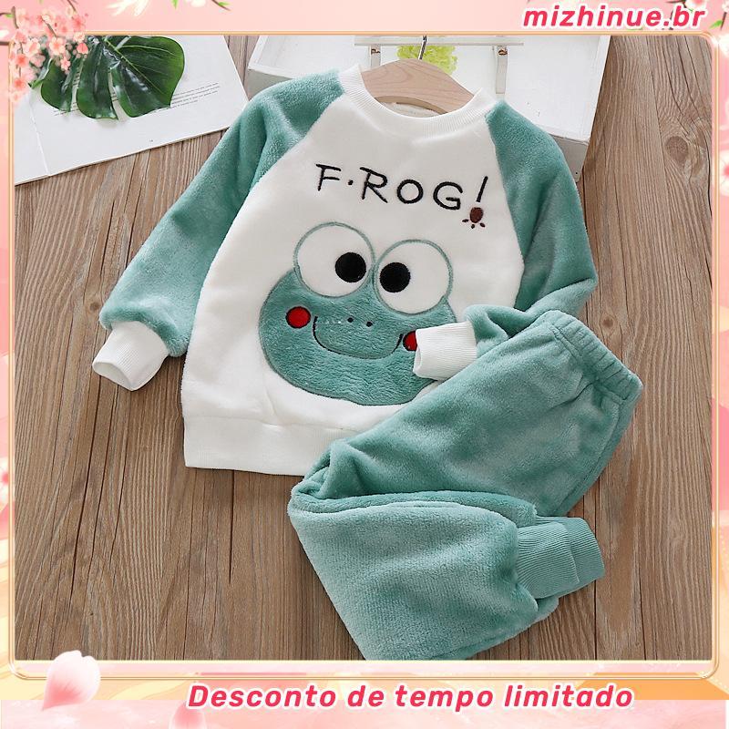 Desenho Animado Baby Boy Girl Winter Warm Thicken Flannel Fleece Tops + Pants Conjunto De 2 Peças Pijamas Crianças Pequ
