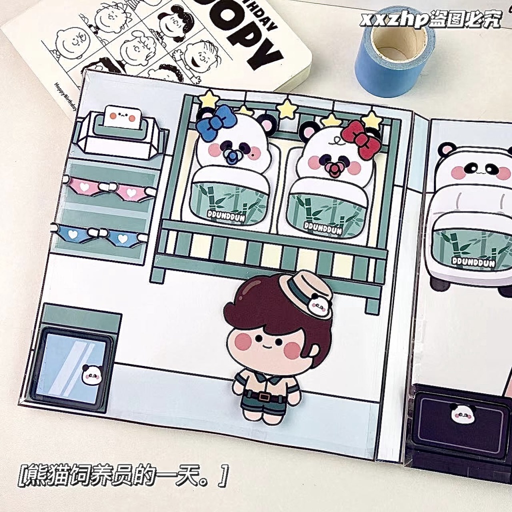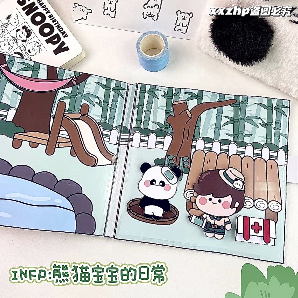 Boneca de papel dos desenhos animados Panda Criativo DIY Toy Home Material Embalagem Toy Paper Book