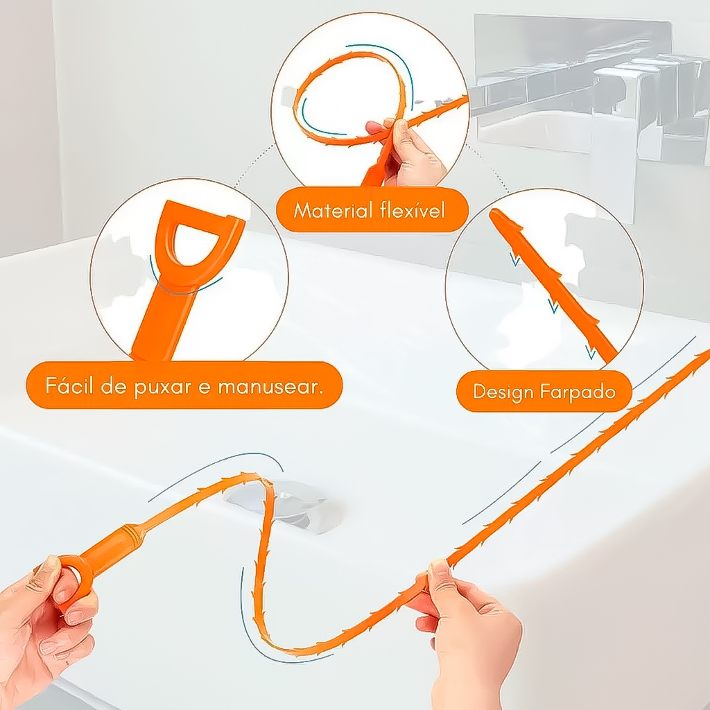 Desentupidor Prático Pegador De Cabelos Para Pias Box Ralos Banheiros Cozinha Lavanderia TOP