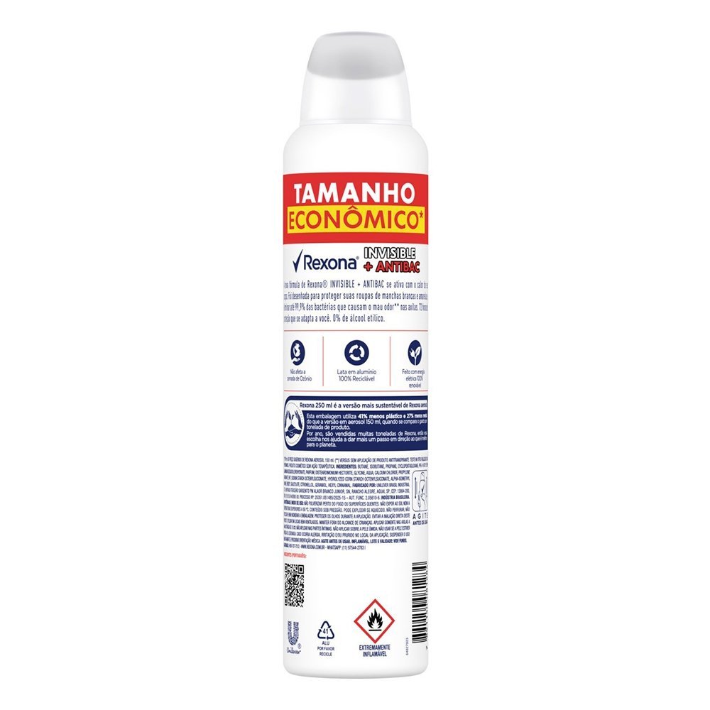 Desodorante Rexona Aerossol Women Antibacterial + Invisible 250ml
