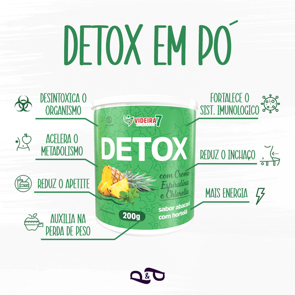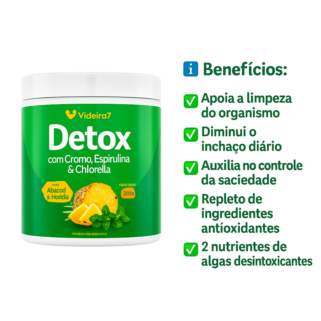 Detox em Pó , Espirulina E Clorella, Cromo, Cha Verde- 200g