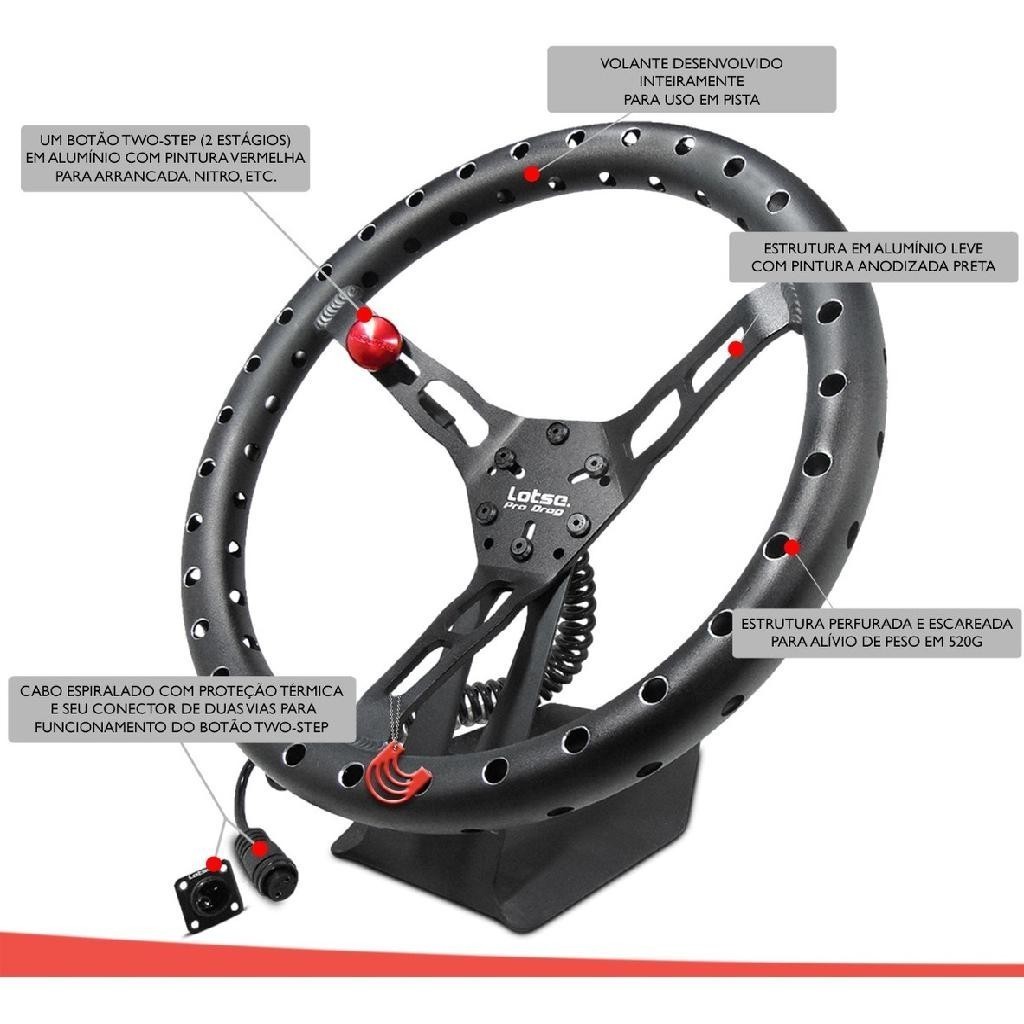 Direção Volante Esportivo Universal Arrancada em Alumínio Com Botão Twostep Lotse Pro Drag PRO-EB
