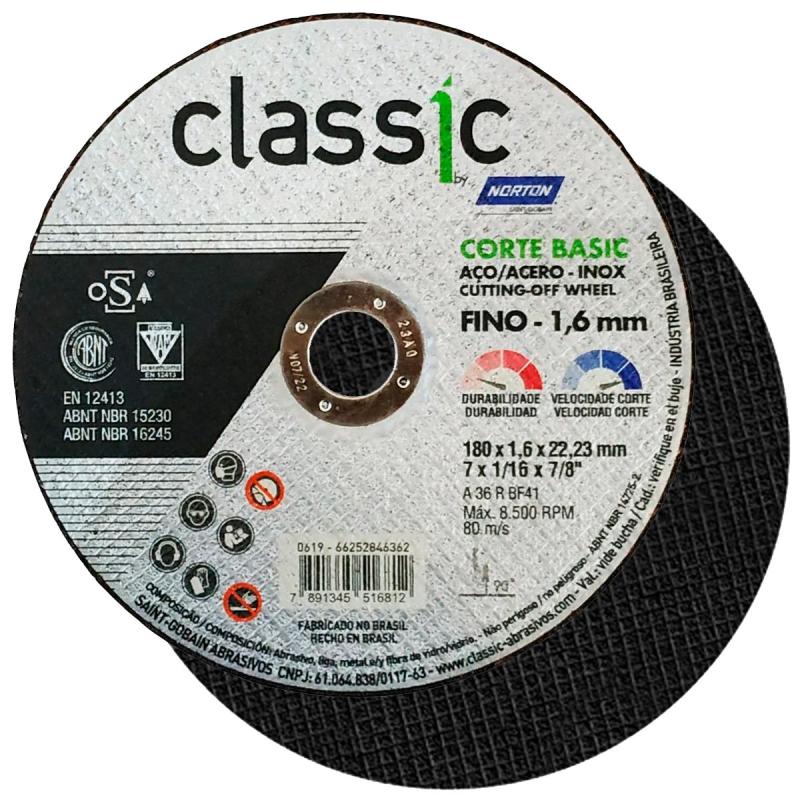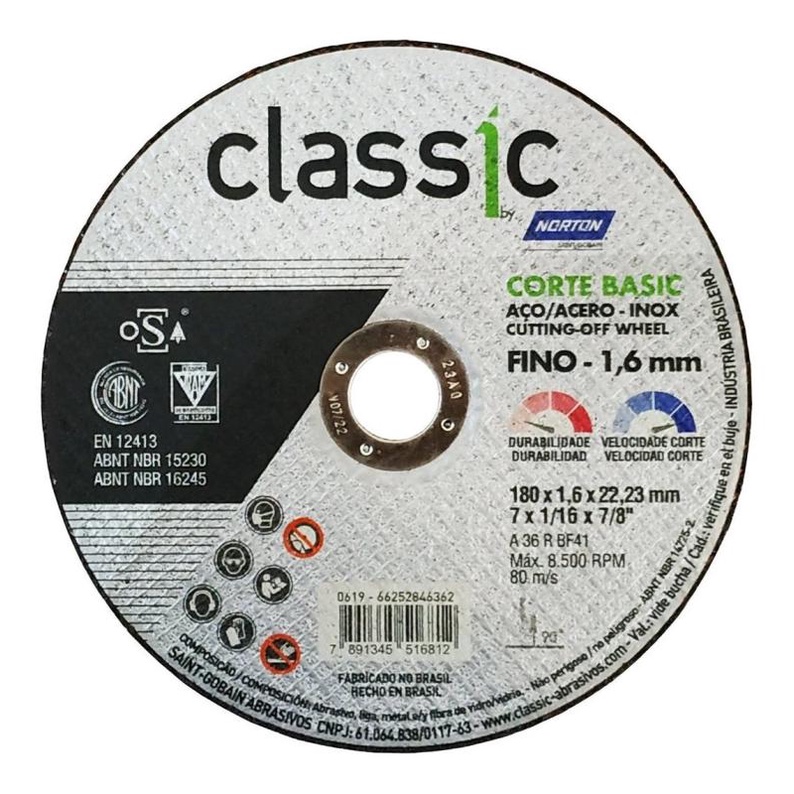 Disco De Corte 7 Pol X 1,6 Mm Aço Inox Classic Basic Norton