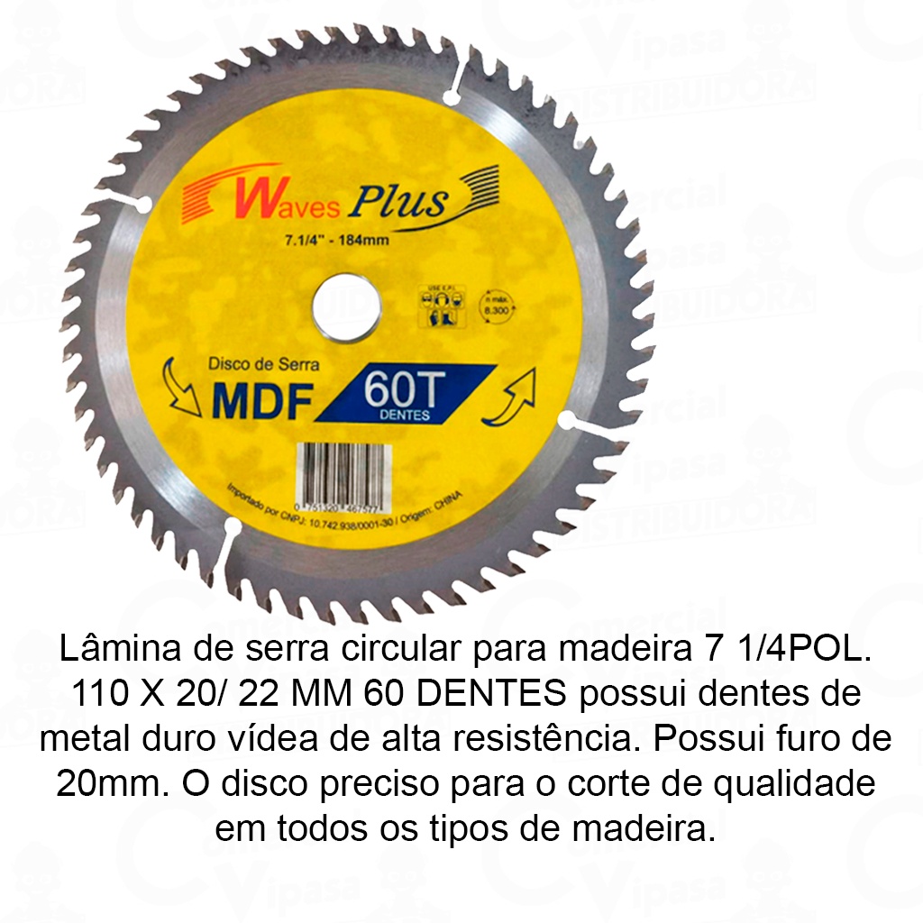 Disco De Corte Serra Circular Para Madeira 72 Dentes Ou 60 Dentes Profissional Marcenaria MDF MDP