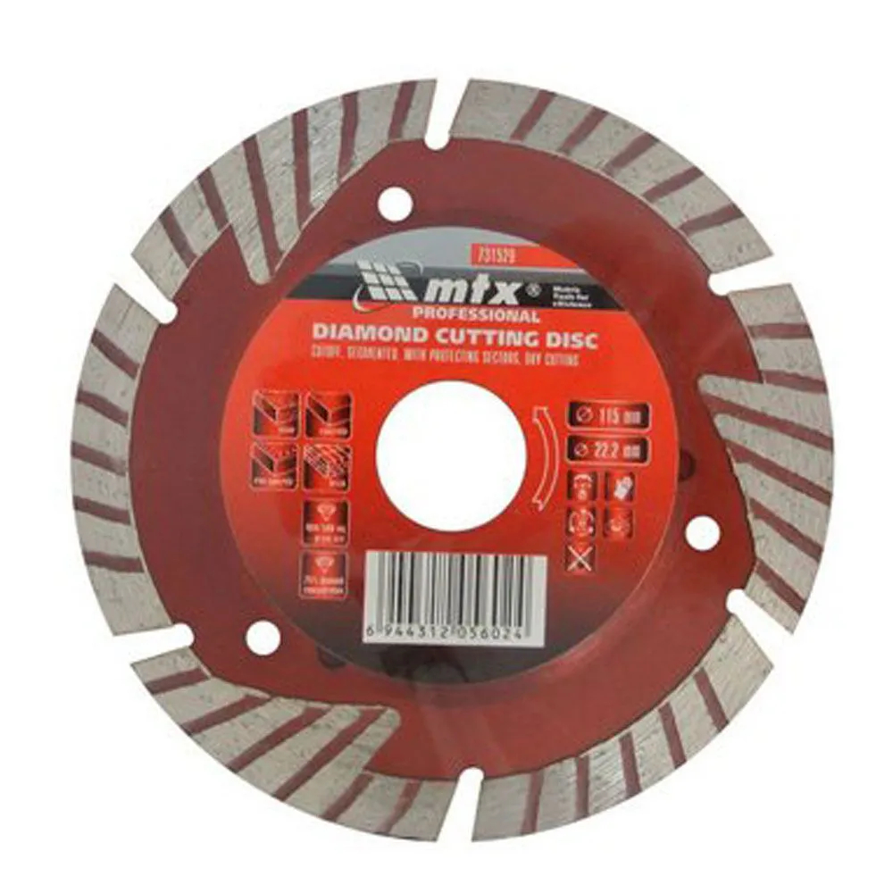 Disco Diamantado Pro Turbo e Segmentado Seco 115x22mm Corte Rápido Concreto Granito Mármore Pedra