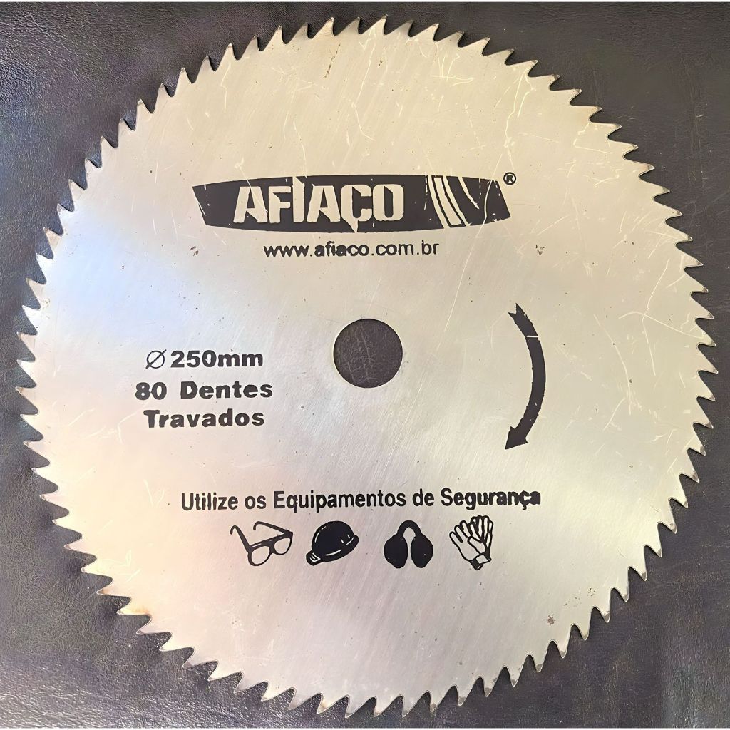 Disco Serra 80 Dentes Travados Afiaço 250mm Furo 25,4 (1 Polegada) com anel de redução 20mm