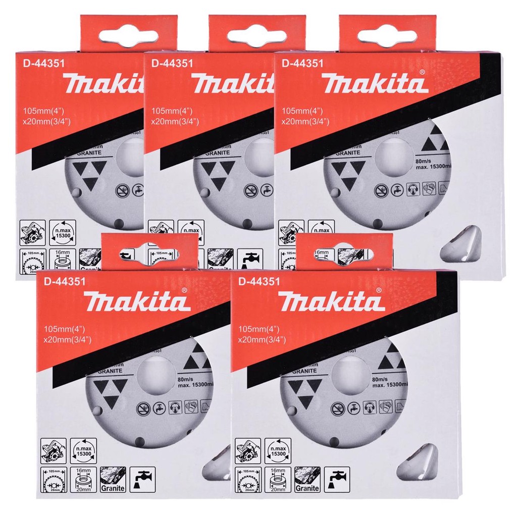 Disco de Corte Diamantado 4.1/8 POL 105 MM para Granito D-44351 Kit com 5 Peças MAKITA