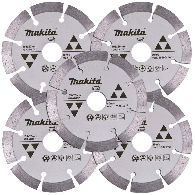 Disco de Corte Diamantado 4.1/8 POL 105 MM para Granito D-44351 Kit com 5 Peças MAKITA