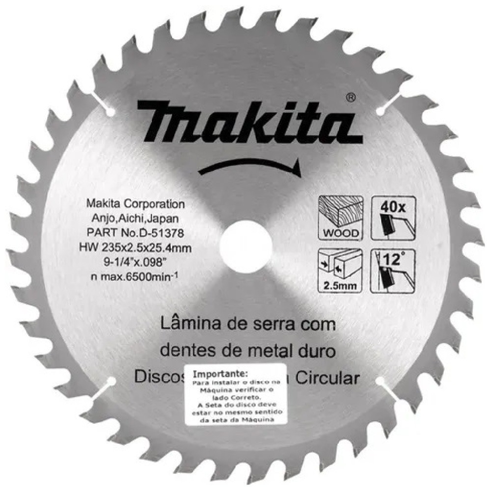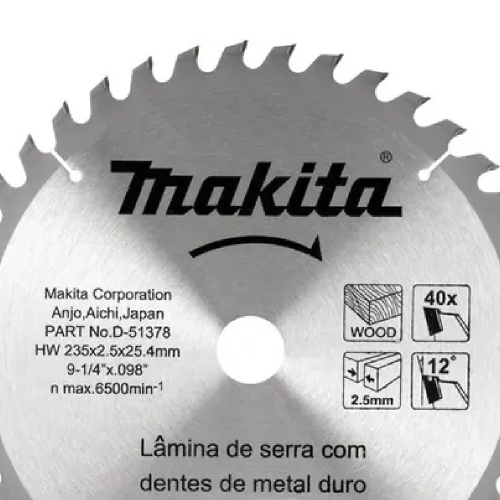 Disco de serra para madeira 235 x 25.4 x 40 dentes - D-51378 - Makita
