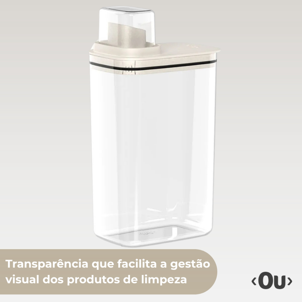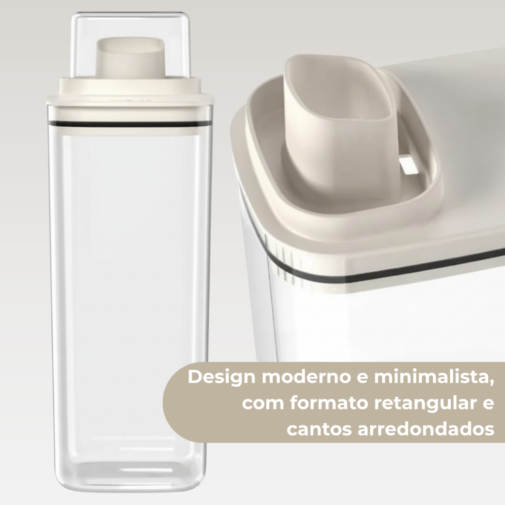 Dispenser Porta Sabão Em Pó Líquido Amaciante 2,3L Com Copo Medidor Transparente Bege
