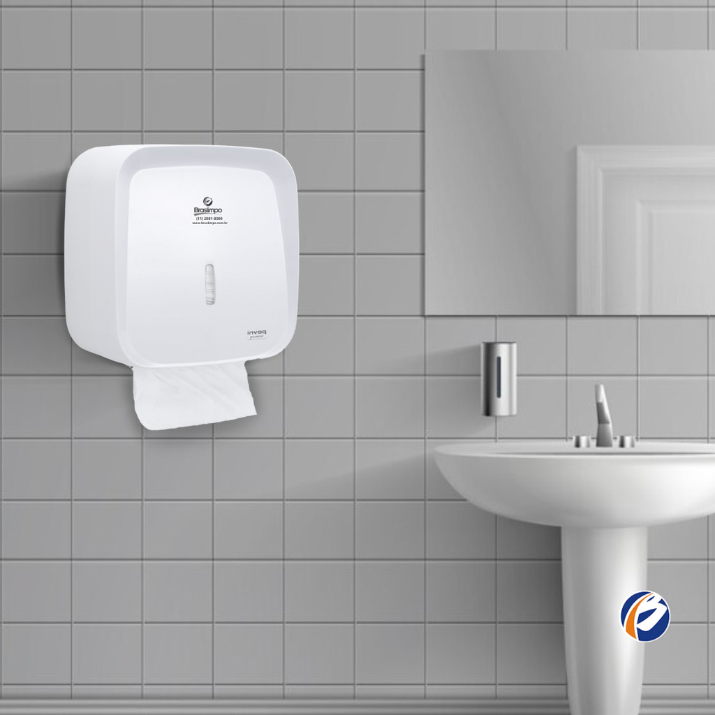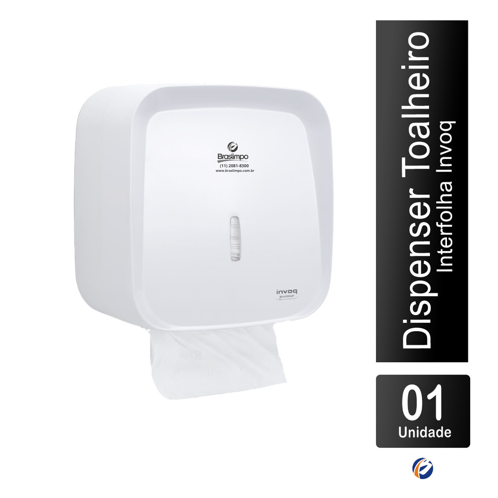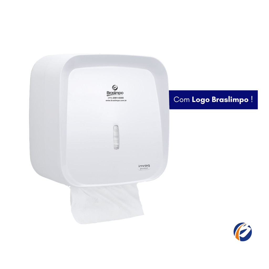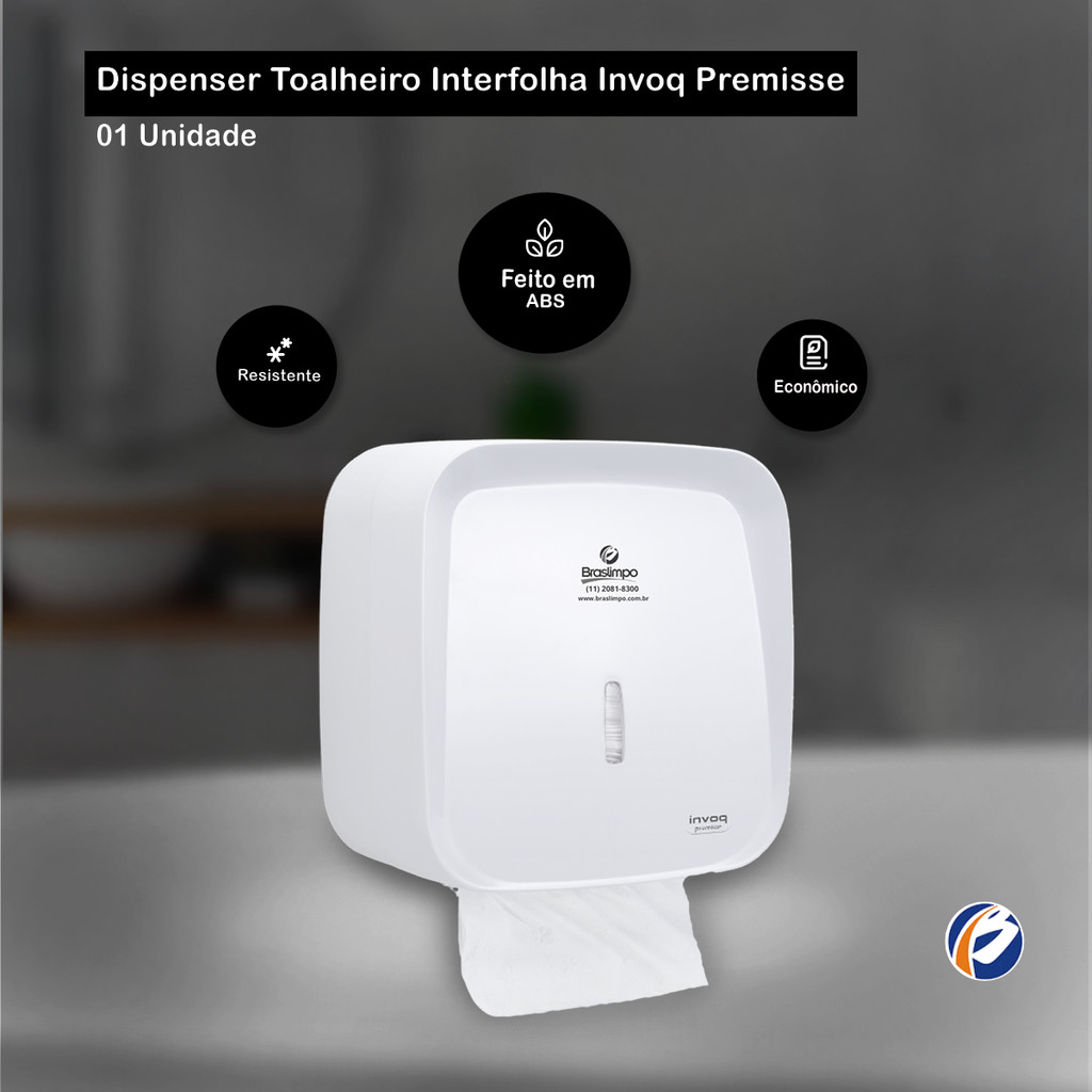 Dispenser Toalheiro Interfolha Branco Invoq Premisse com Logo Braslimpo