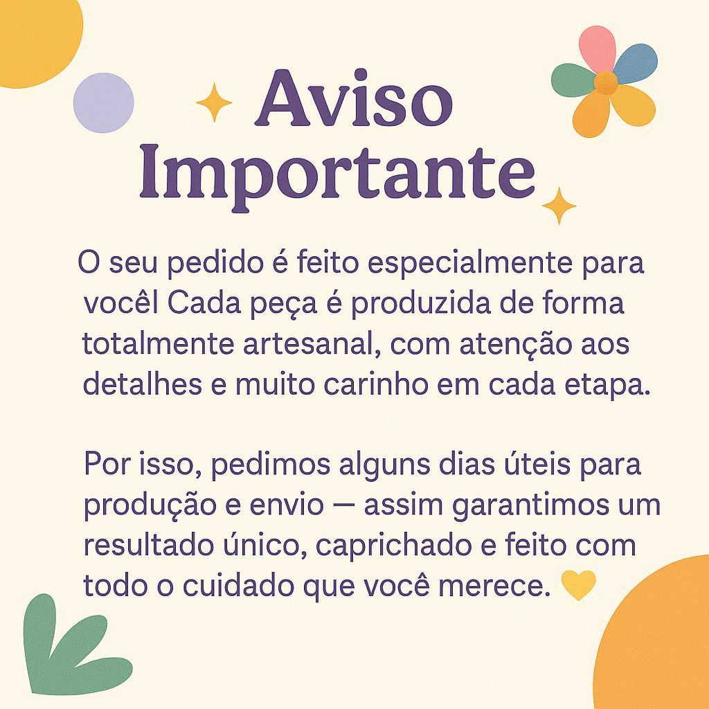 Sob encomenda: envio após 5 dias da compra