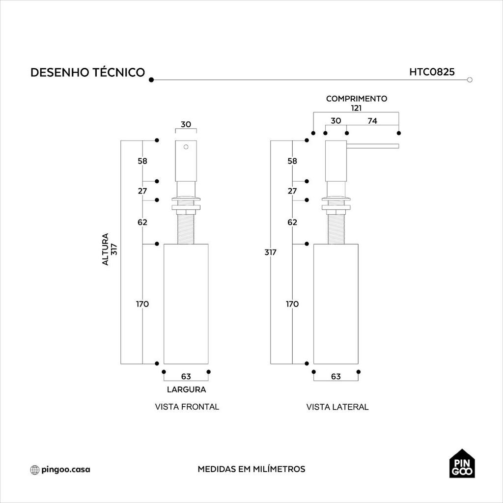 Dosador de Detergente Capiá 500ml Aço Inox 304 Pingoo.casa - Preto
