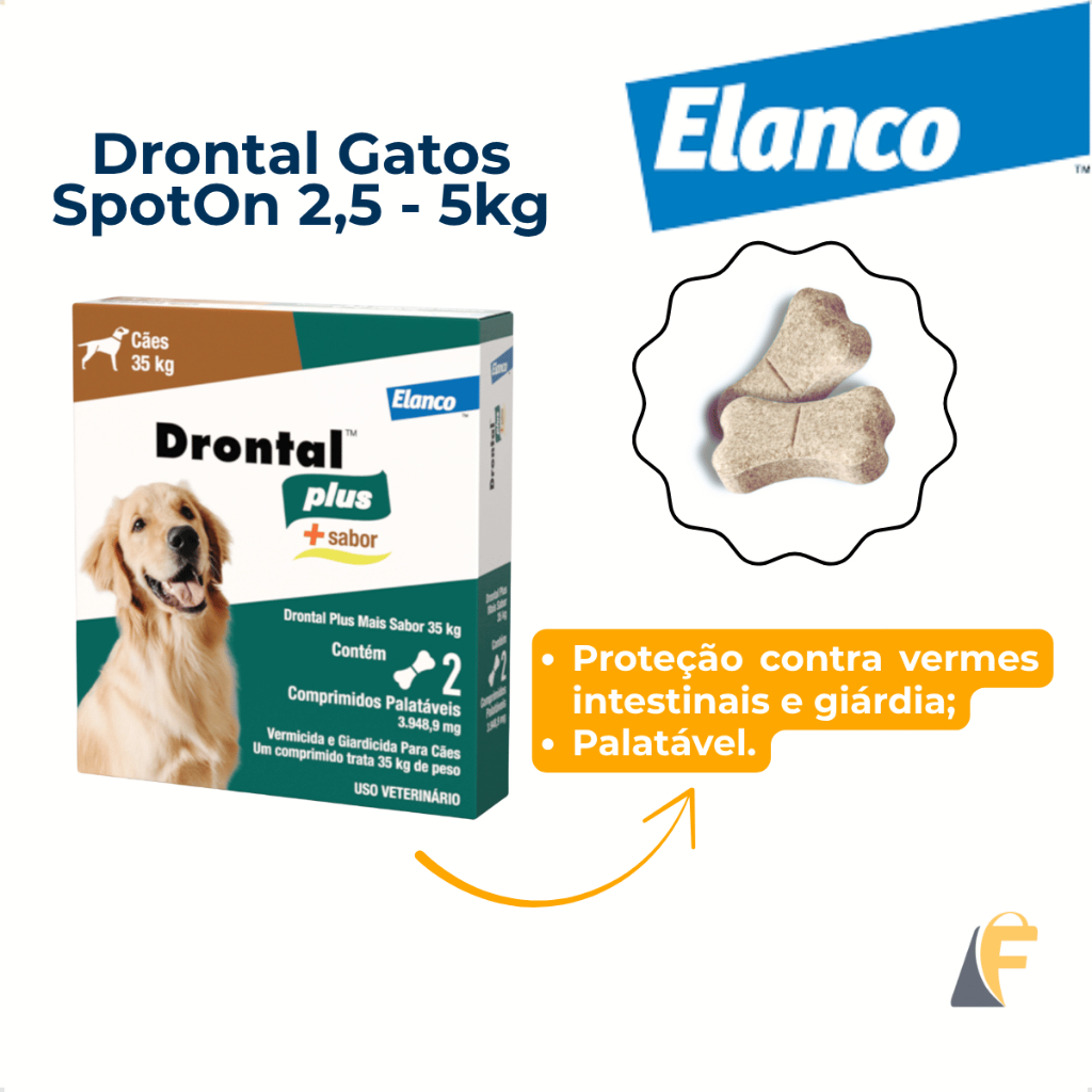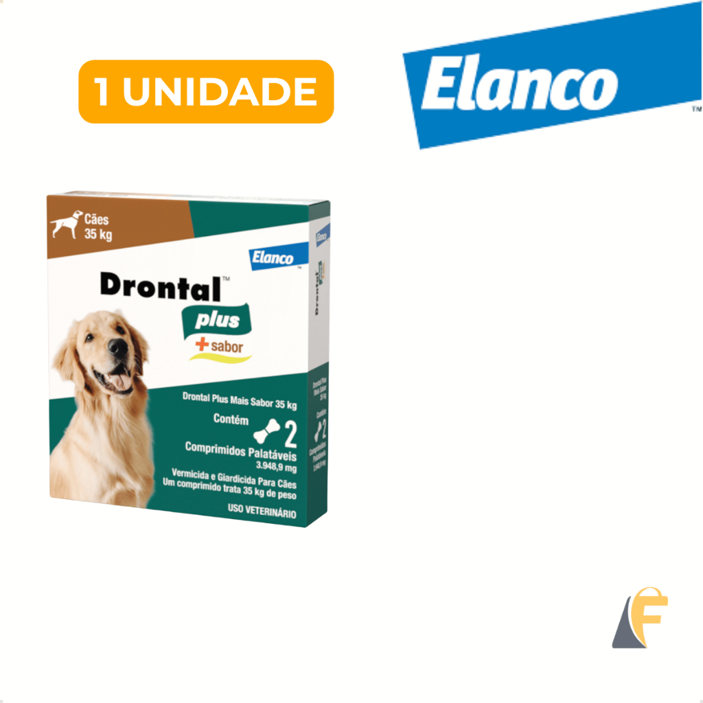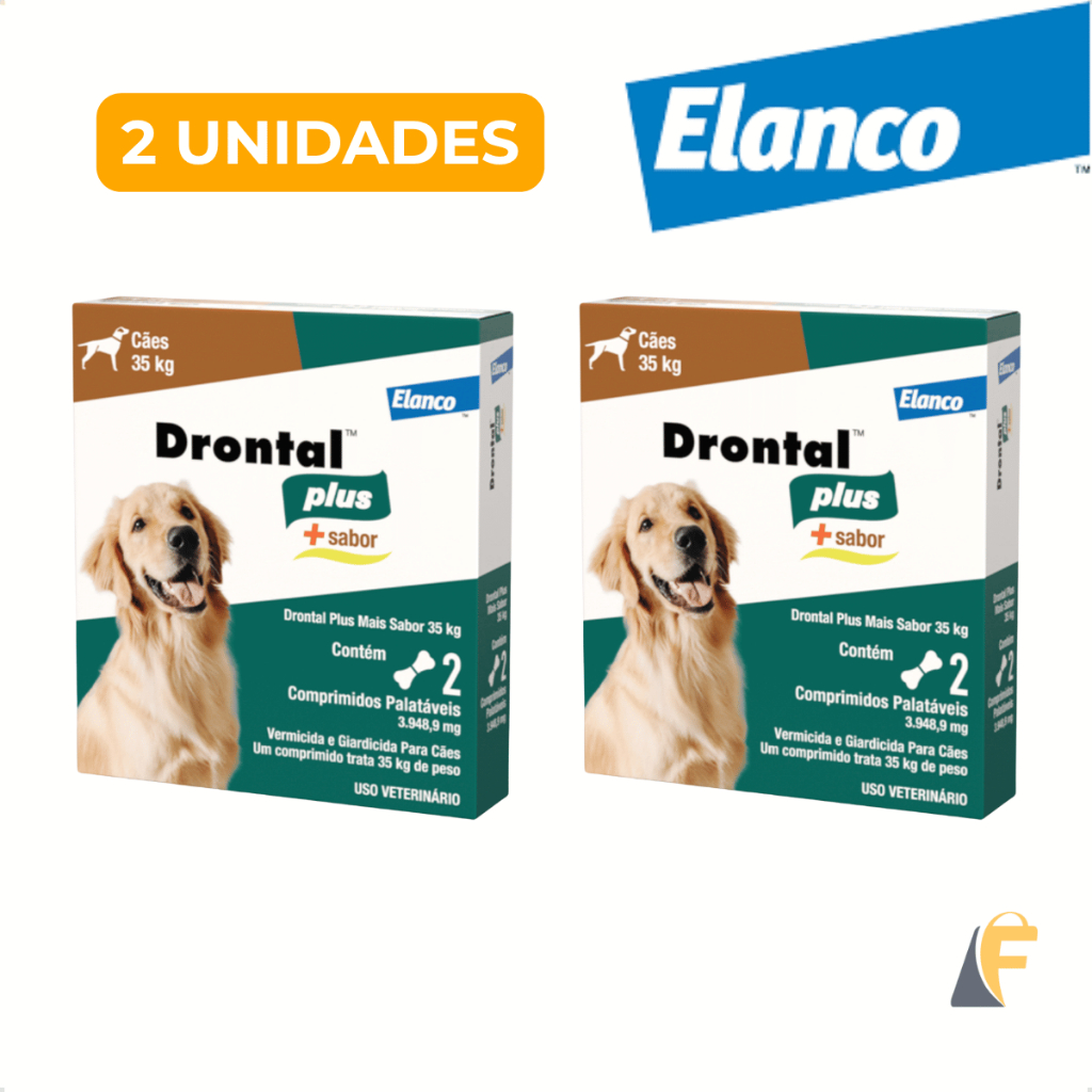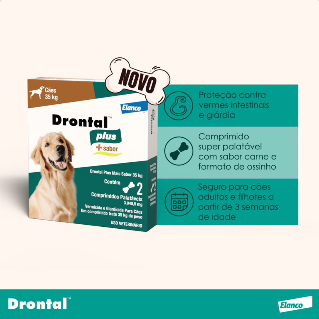 Drontal Plus Vermífugo Carne Cães Cachorro 35kg 2 Comprimidos Palatável Giárdia Giardíase Vermes Elanco