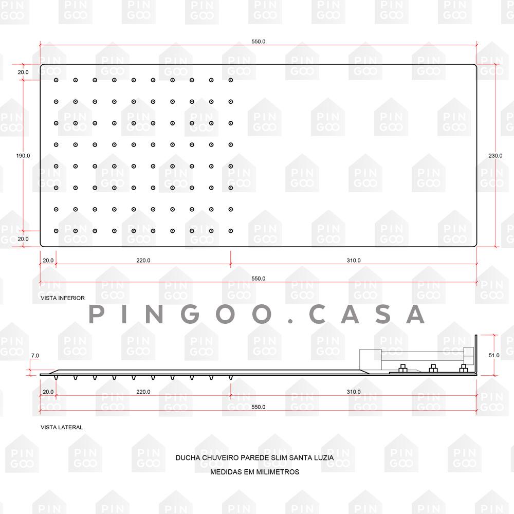 Ducha Chuveiro De Parede Slim Santa Luzia Pingoo - Dourado
