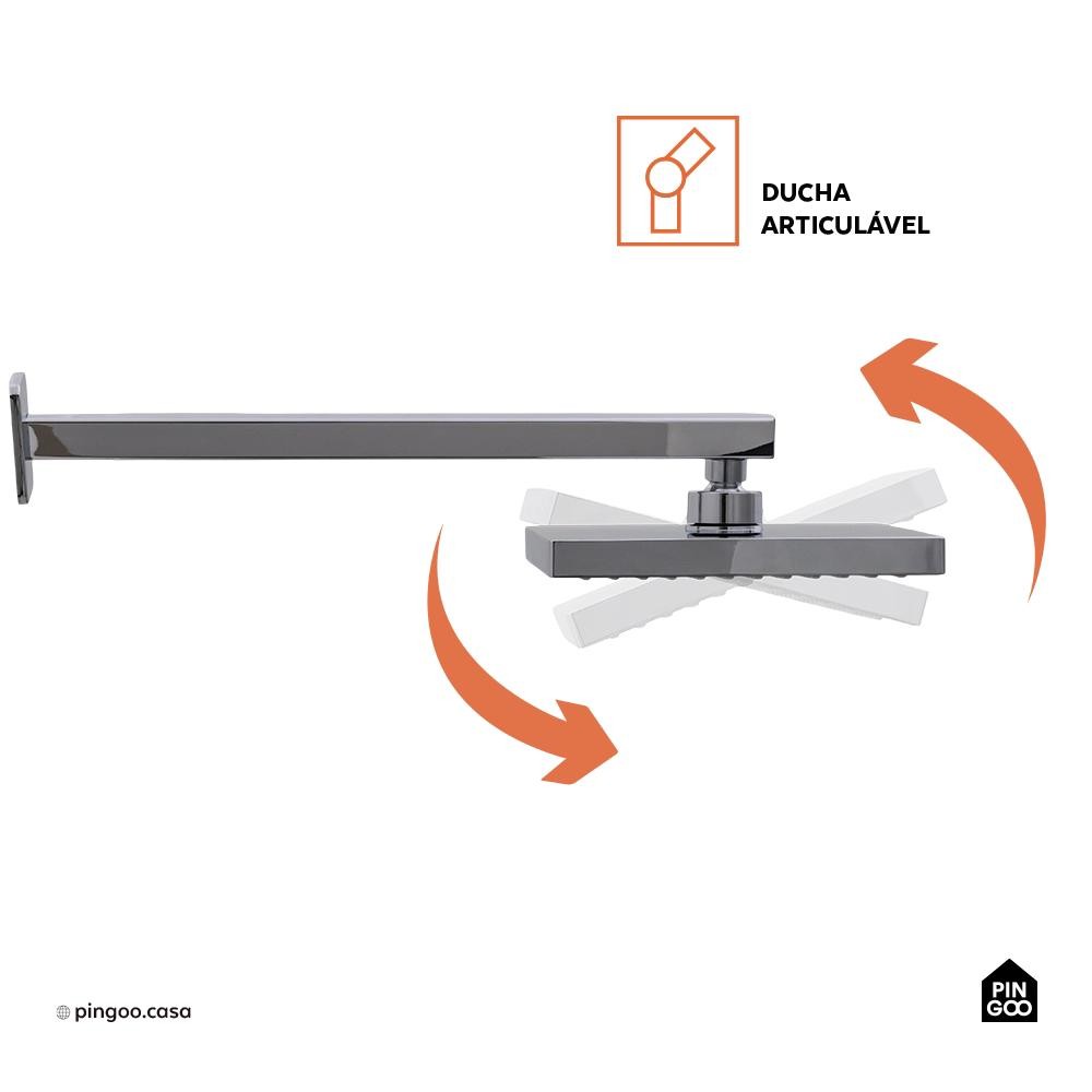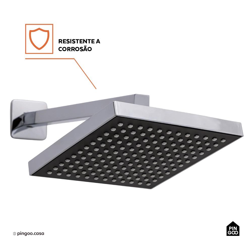 Ducha Chuveiro Quadrado de Parede Tucuruí Pingoo - Prata